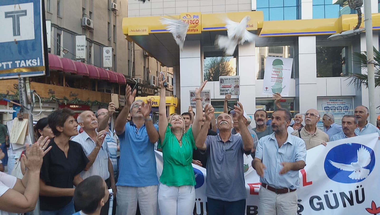 Malatya’da 1 Eylül Dünya Barış Günü vesilesiyle Barış parkında toplanan kitle “1 1 Eylül Dünya Barış Günü kutlu olsun” pankartı açarak sık sık sloganlar attı.