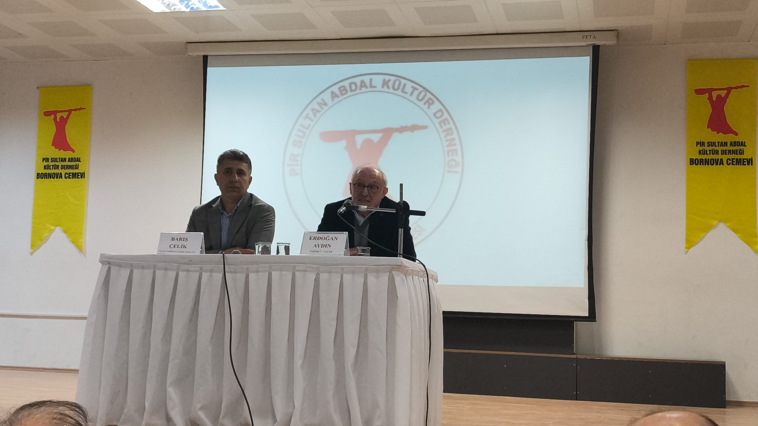 Alevi Bektaşi Federasyonu ile Pir Sultan Abdal Kültür Derneği Bornova Şubesi’nin düzenlediği panelde tarihçi ve yazar Erdoğan Aydın konuşmacı olarak yer aldı. Panelde Türkiye’de Alevilerin karşı karşıya kaldığı eşit yurttaşlık sorunu, toplumsal barış sürecinin önemi ve Ortadoğu’da özellikle Suriye’de Alevilere yönelik saldırılar ele alındı.