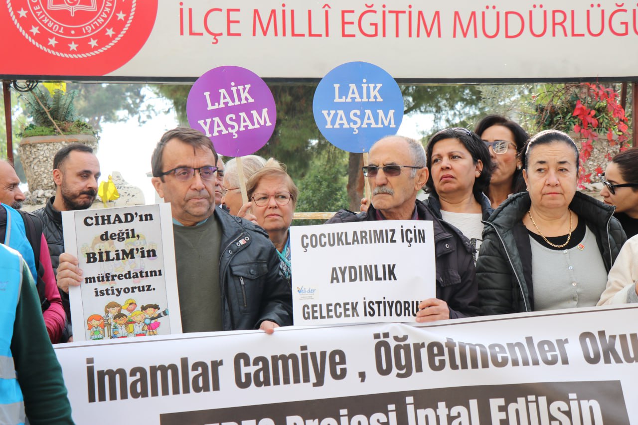 PİRHA- İzmir’de öğrenci velileri, Bornova’da 99 okula imam atanarak din dersinin belirlenen bir camide verilmek istenmesine tepki gösterdi. Veli-Der öncülüğünde yapılan eylemde, iktidarın eğitim sistemini siyasal-ideolojik hedefleri doğrultusunda bir araç olarak kullandığı belirtildi.