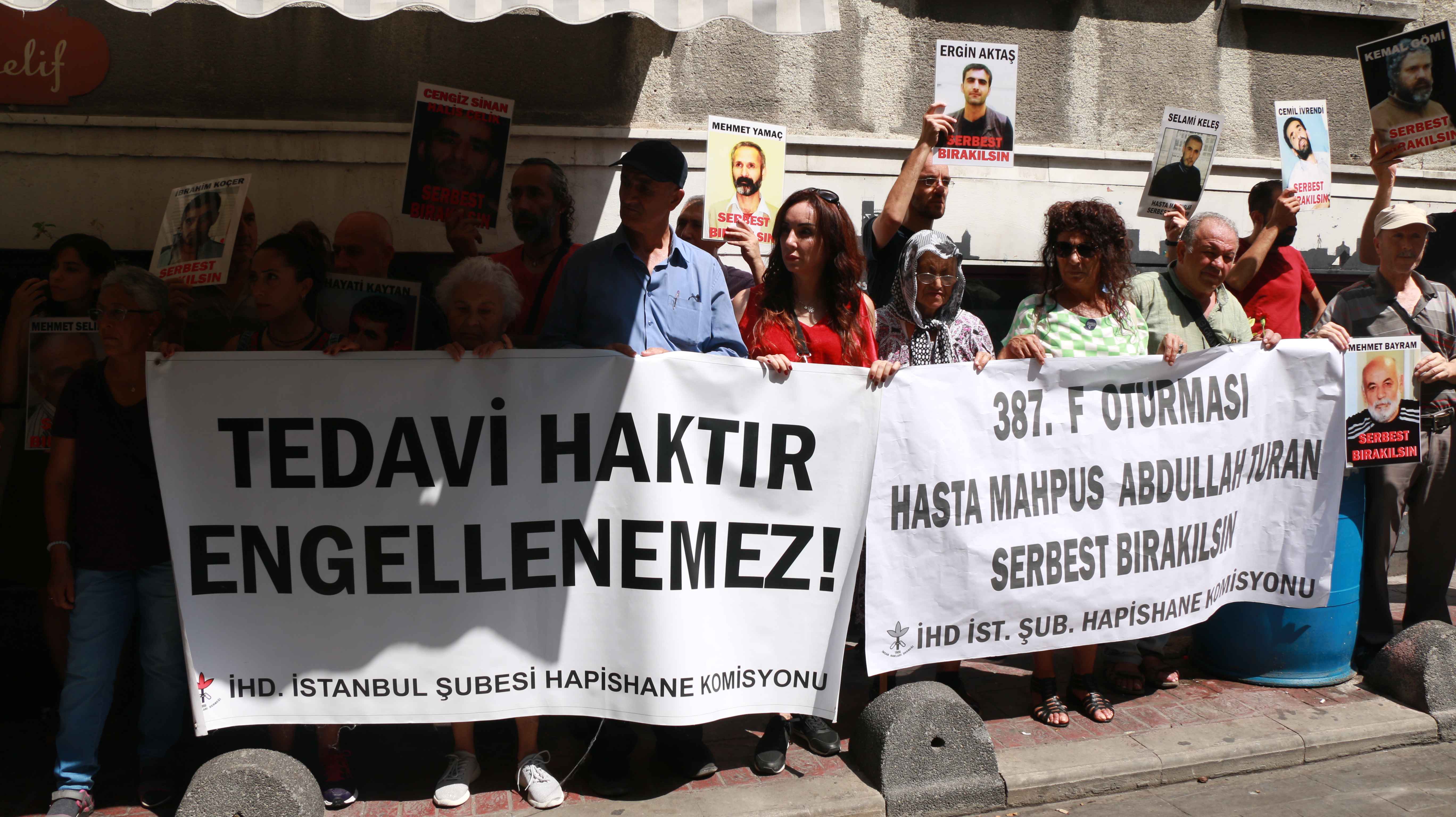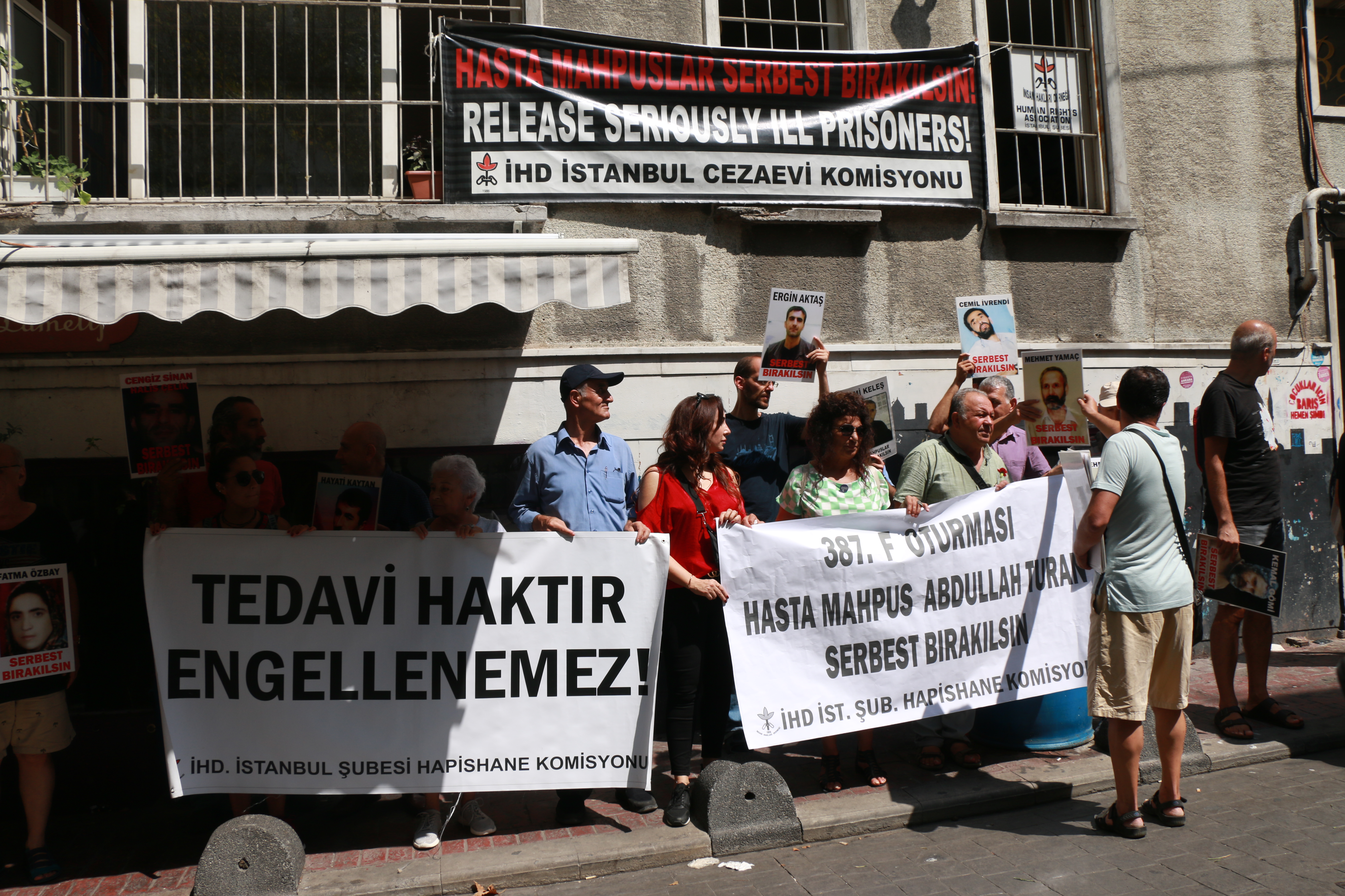 Hasta mahpusların durumuna dikkat çekmek amacıyla düzenlenen F Oturması eyleminin 387’incisi düzenlendi. Bu haftaki eylemde Metris R Tipi Cezaevi’nde kalan ağır hasta mahpus Abdullah Turan’ın serbest bırakılması talep edildi.