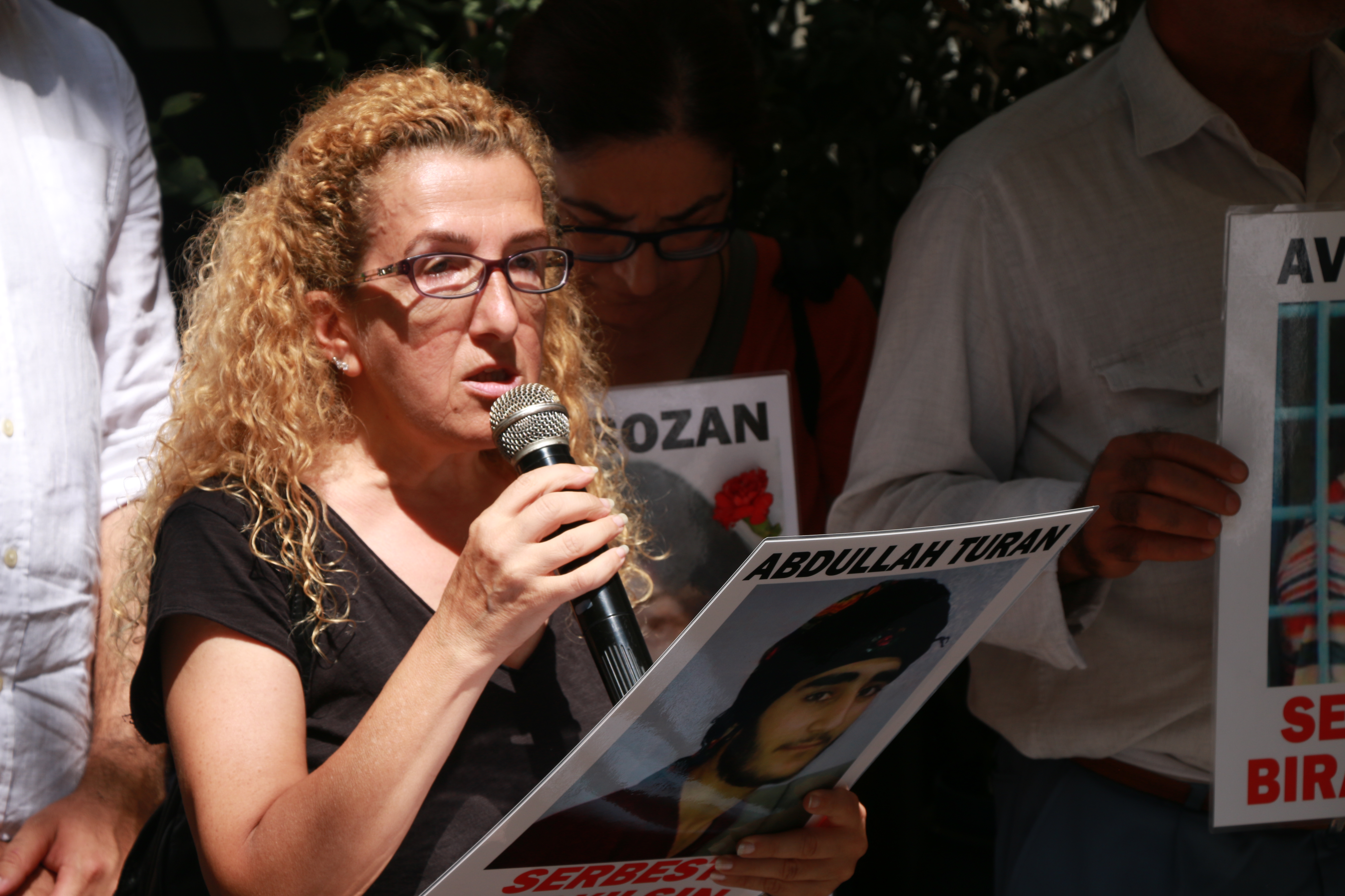 Basın metnini hak savunucusu Meryem Bars okudu. Abdullah Turan’ın Trabson Beşikdüzü Cezaevi’nde tecrite karşı açlık grevi sürecinde yaşamına son verme eylemi yapan politik bir hasta mahpus olduğunu ve bu eylem sırasından boynundan aşağısının felç olduğunu hatırlatan Bars, Turan’ın Trabzon’daki Eğitim Araştırma Hastanesine kaldırıldığını ancak geçirdiği beyin travması nedeniyle hastanedeki ilk 10 gününü hatırlayamadığını belirtti.
