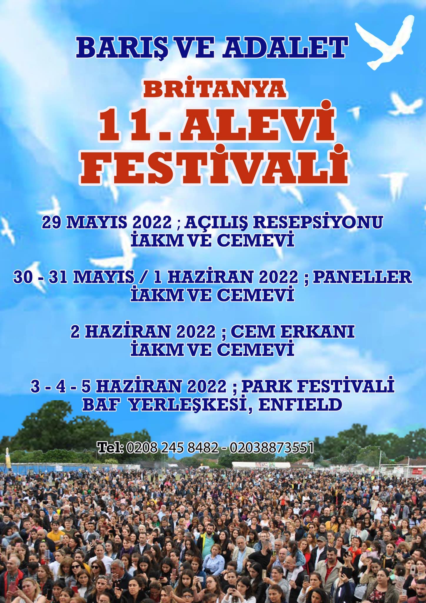 Britanya 11. Alevi Festivali ‘Barış ve Adalet’ şiarıyla 29 Mayıs ile 5 Haziran tarihlerinde gerçekleştirilecek. Festival komitesi tarafından yapılan açıklamada, “Festivalimiz ülkemizde halen yok sayılan Alevi kimliği ve Alevilerin taleplerini dünyaya duyuran güçlü bir sestir” denildi.