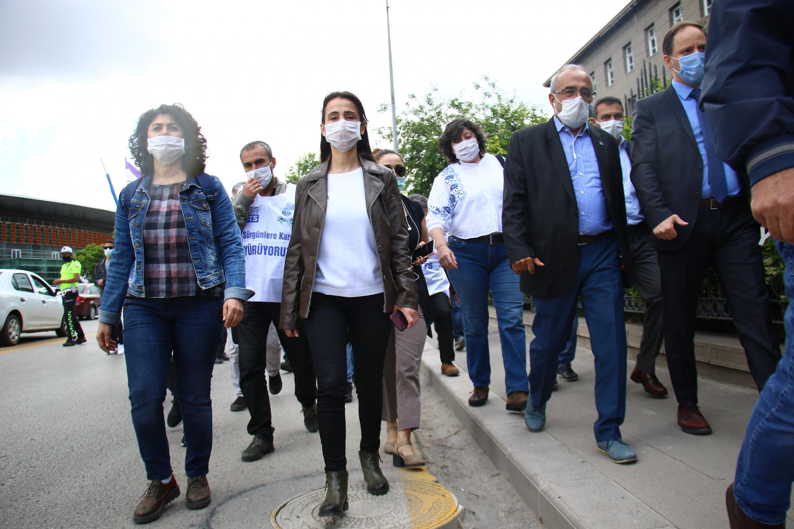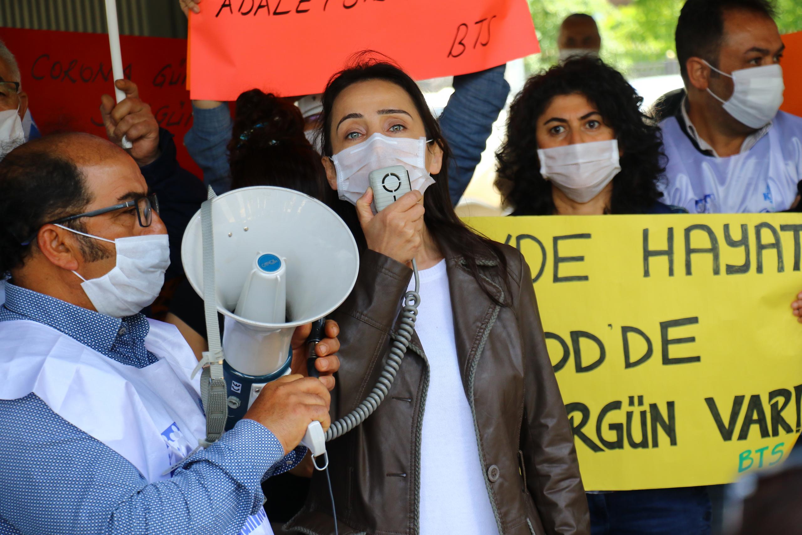 HDP Adana Milletvekili Tülay Hatimoğulları da, salgın sürecinde yaşam koşullarının gözetilmeden yapılan sürgünlerin durdurulması gerektiği çağrısında bulunarak, “İktidar liyakatsizliklerle devletin birçok kurulusunda kendi yandaşlarını atamaya devam ediyor. Bugün sürgün edilen emekçilerin içinde ağır hastalar da var. Bu hastalıkları göz önünde bulundurmayan yaklaşım zalimliğin göstergesidir. Bu ülkeyi faşist diktatörlüğe çevirmeyen çalışan AKP ve bütün güçlerin şunu bilmesi gerekiyor; haklardan, özgürlüklerden, demokrasiden yana olan herkesin büyük mücadeleler vereceği günlere geldik. Bizler bu faşizmin sürmesine izin vermeyeceğiz” diye konuştu.