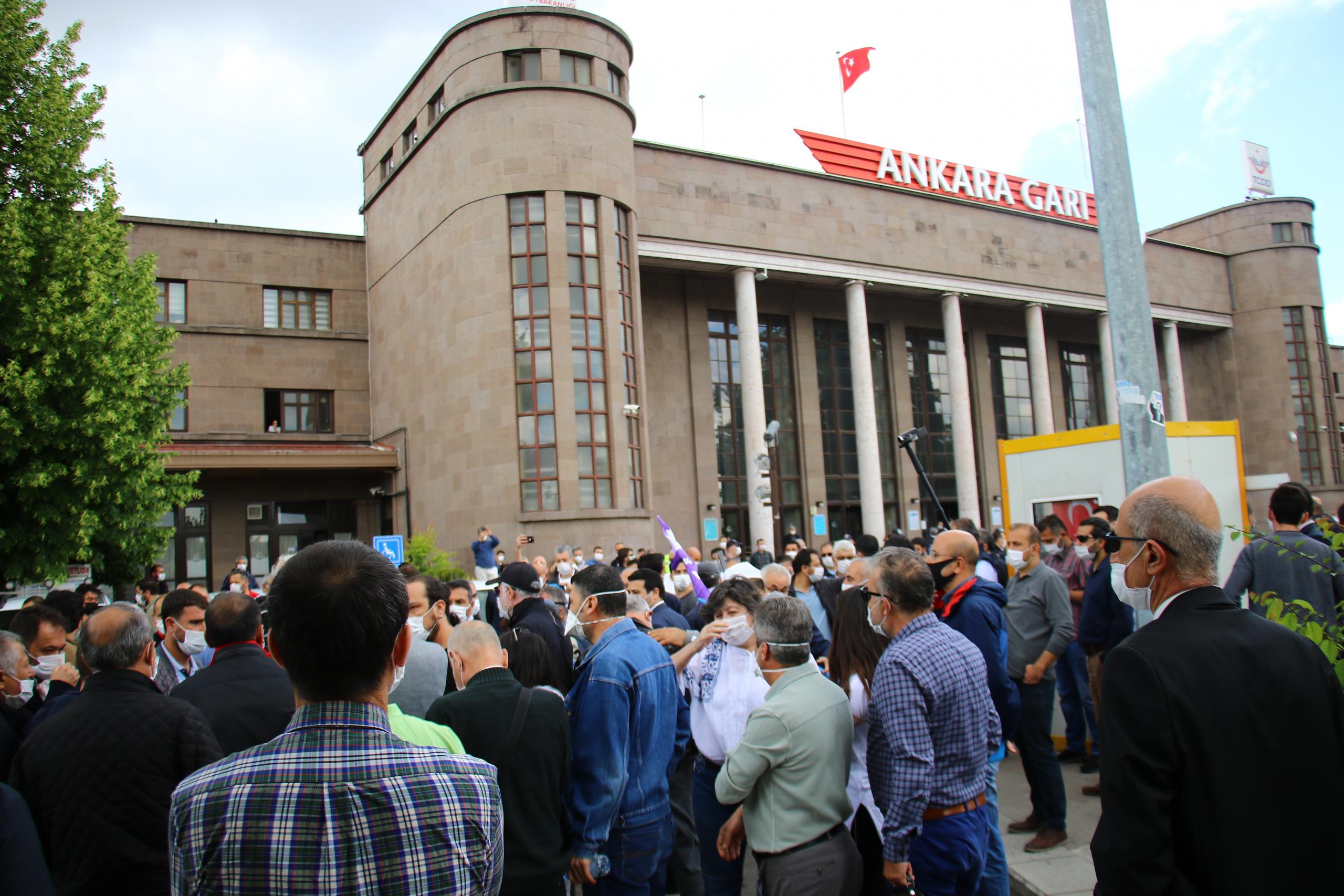 HDP ve CHP milletvekillerinin de olduğu grup, engelleme üzerine uzun süre polis ile tartıştı. Ardından BTS üyeleri ve milletvekilleri, TCDD önüne geçti. Sabah saatlerinde TCDD önünde başlayan polis yoğunluğu sürüyor.