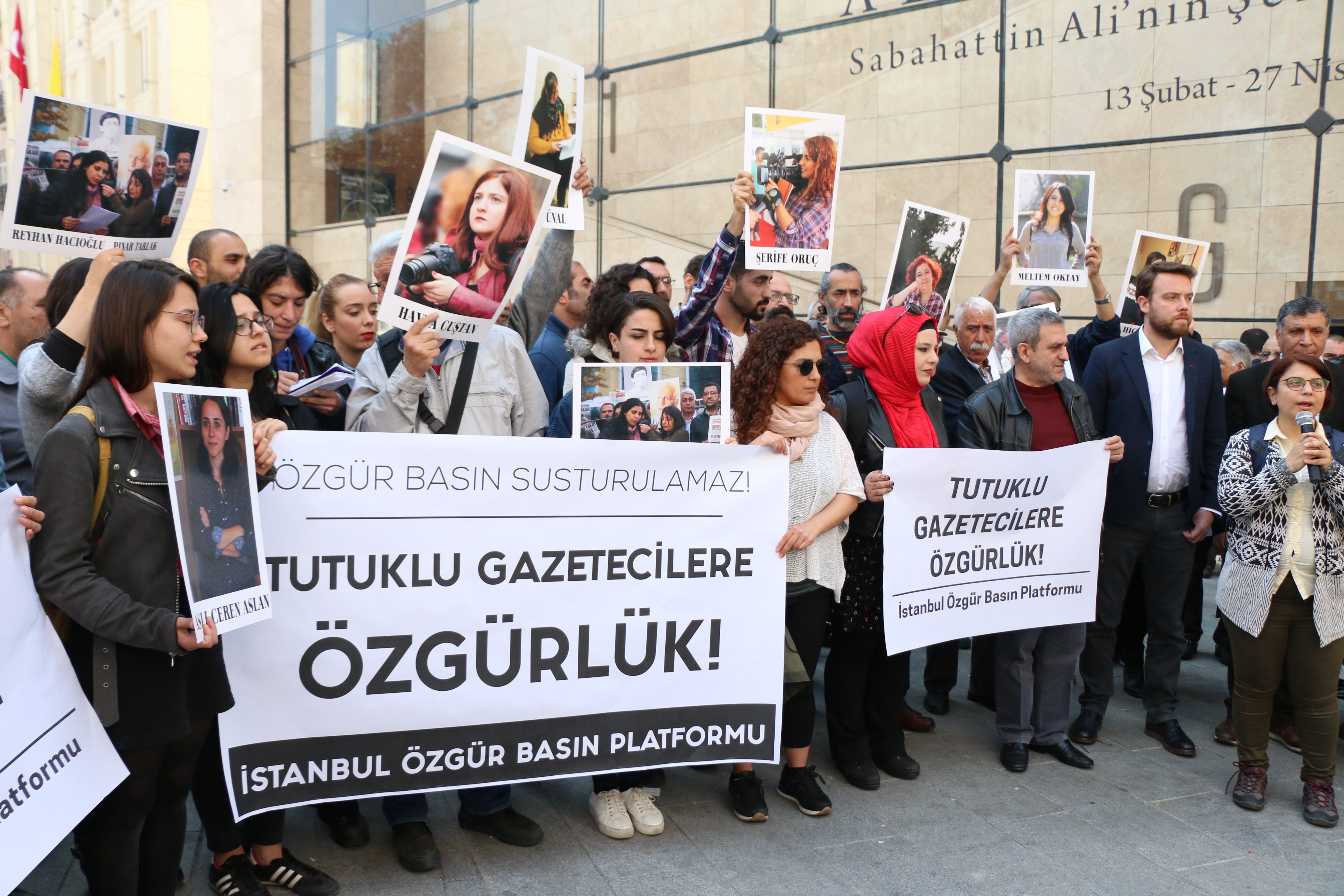 İstanbul Özgür Basın Platformu’nun gerçekleştirdiği eyleme Türkiye Gazeteciler Sendikası (TGS), Özgür Gazeteciler İnisiyatifi (ÖGİ), İnsan hakları savunucuları, Cumartesi Anneleri ve çok sayıda kişi destek verdi. “Tutuklu gazetecilere özgürlük” pankartı açılarak “Gazetecilik suç değildir” ve “ Basın susturulamaz” dövizleri ve tutuklu gazetecilerin fotoğrafları taşındı. taşındı. Açıklamada sık sık “Haber alma hakkımız engellenemez”, “Tutsak gazeteciler serbest bırakılsın”, “Özgür basın susturulamaz” ve “Susma haykır özgür basın vardır” sloganları atıldı.