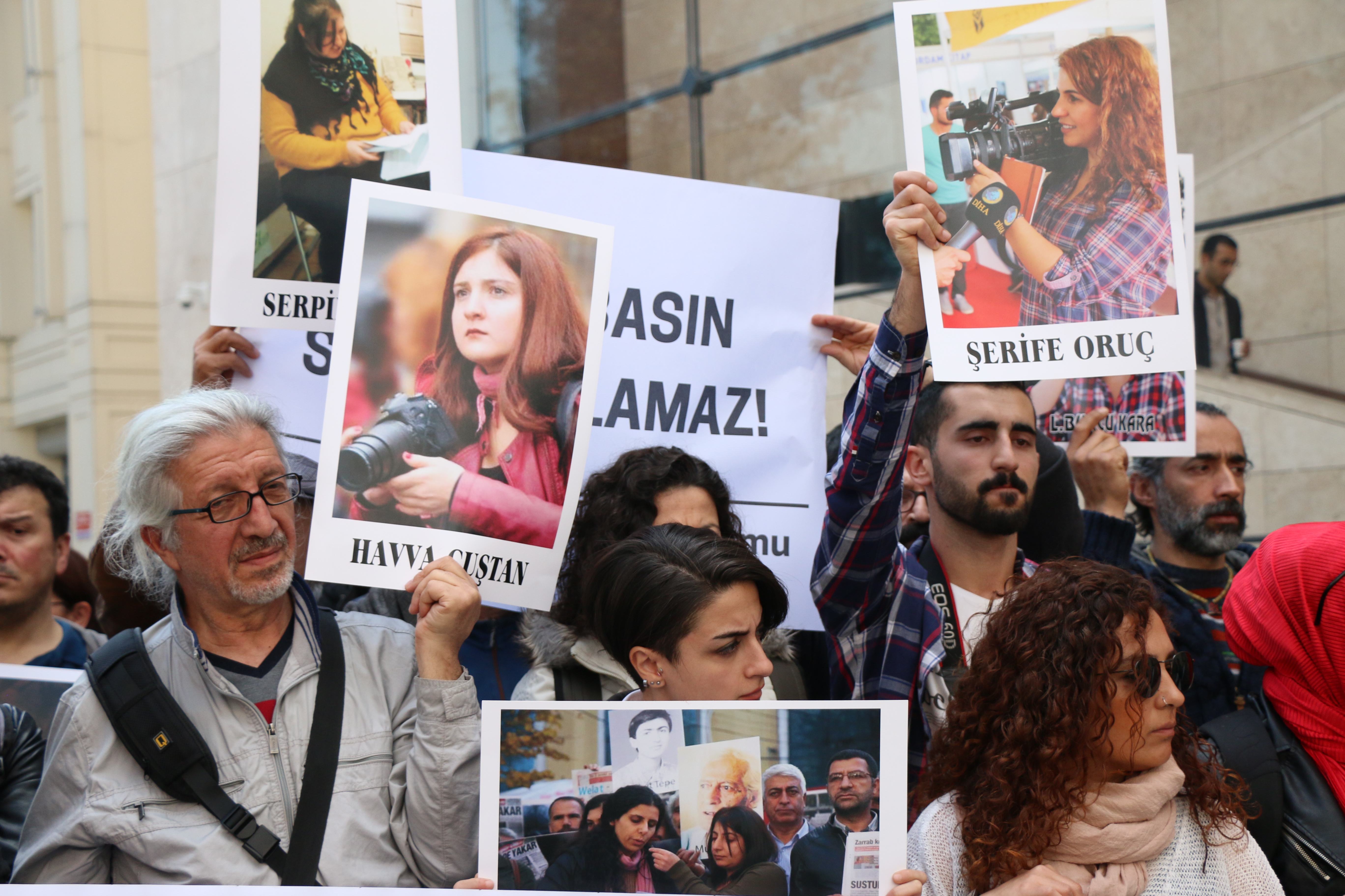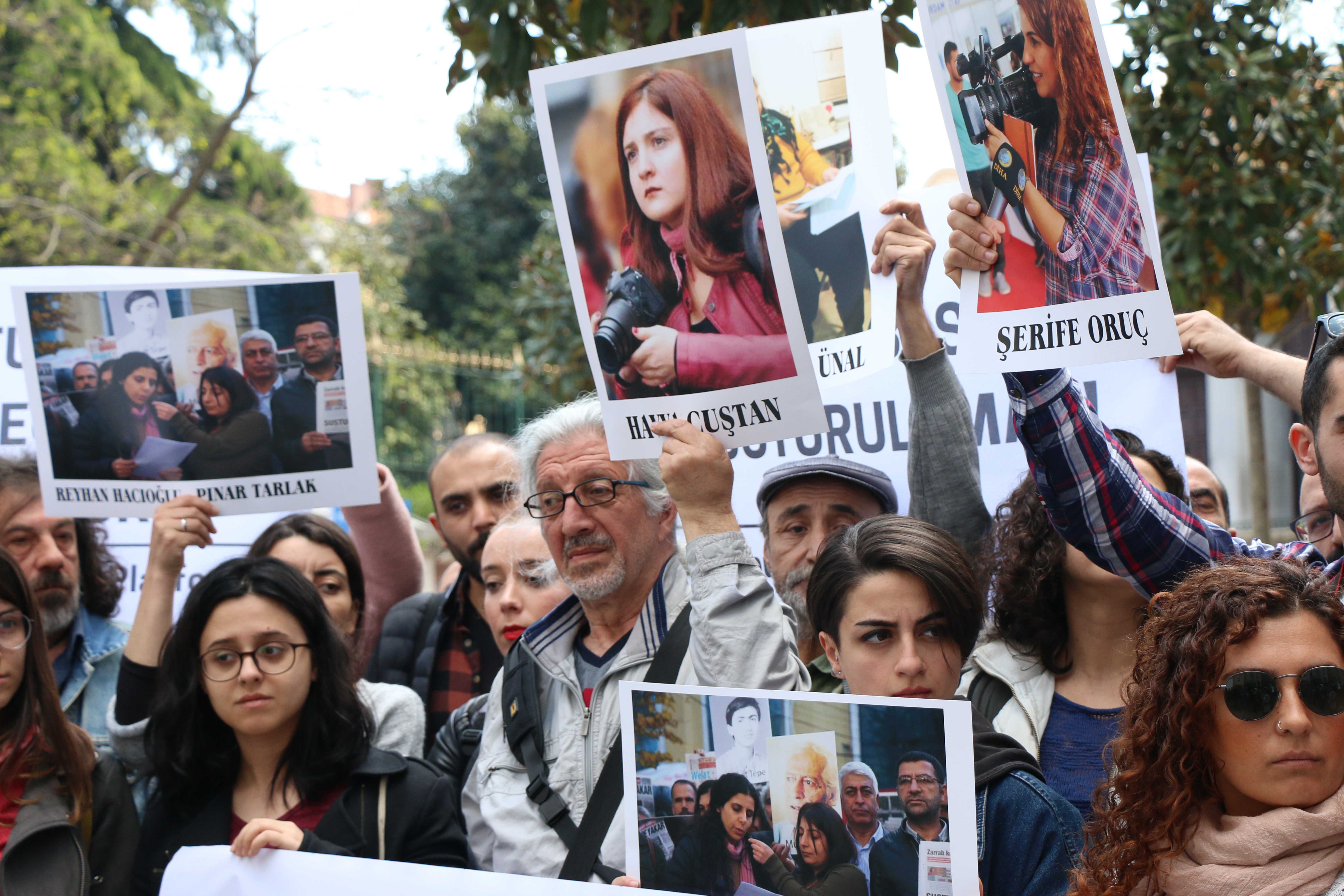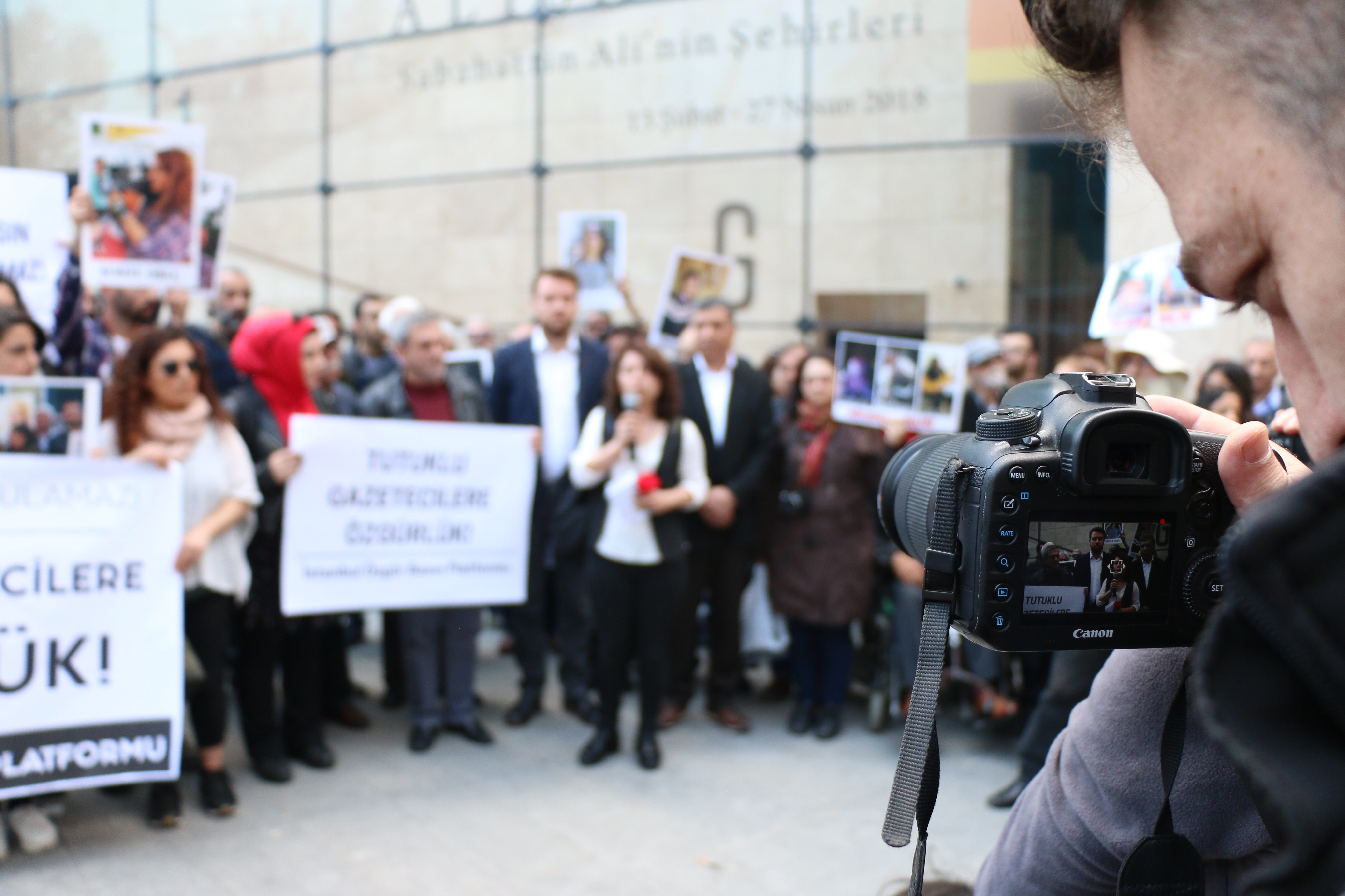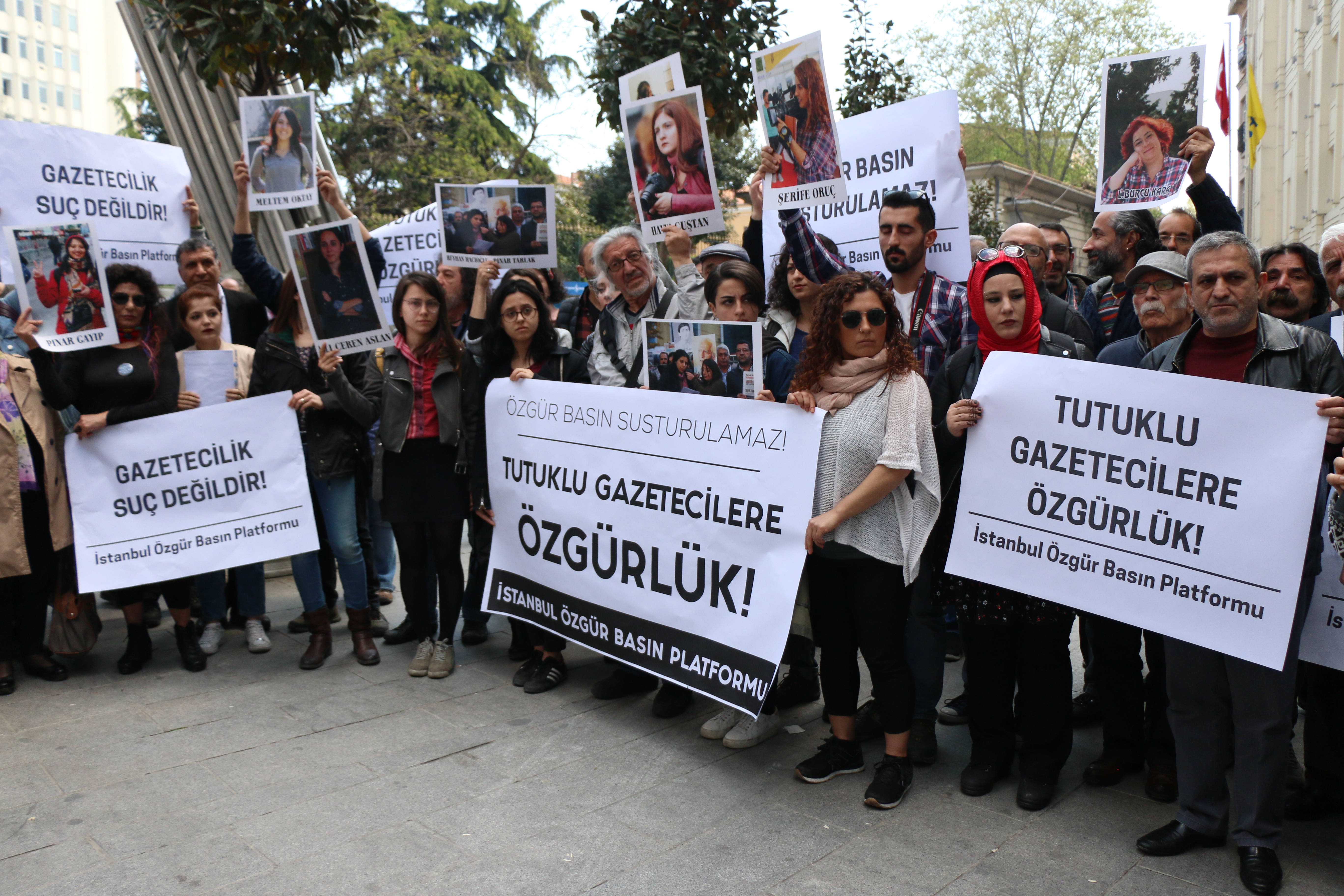 İstanbul Özgür Basın Platformu’nun gerçekleştirdiği eyleme Türkiye Gazeteciler Sendikası (TGS), Özgür Gazeteciler İnisiyatifi (ÖGİ), İnsan hakları savunucuları, Cumartesi Anneleri ve çok sayıda kişi destek verdi. “Tutuklu gazetecilere özgürlük” pankartı açılarak “Gazetecilik suç değildir” ve “ Basın susturulamaz” dövizleri ve tutuklu gazetecilerin fotoğrafları taşındı. taşındı. Açıklamada sık sık “Haber alma hakkımız engellenemez”, “Tutsak gazeteciler serbest bırakılsın”, “Özgür basın susturulamaz” ve “Susma haykır özgür basın vardır” sloganları atıldı.