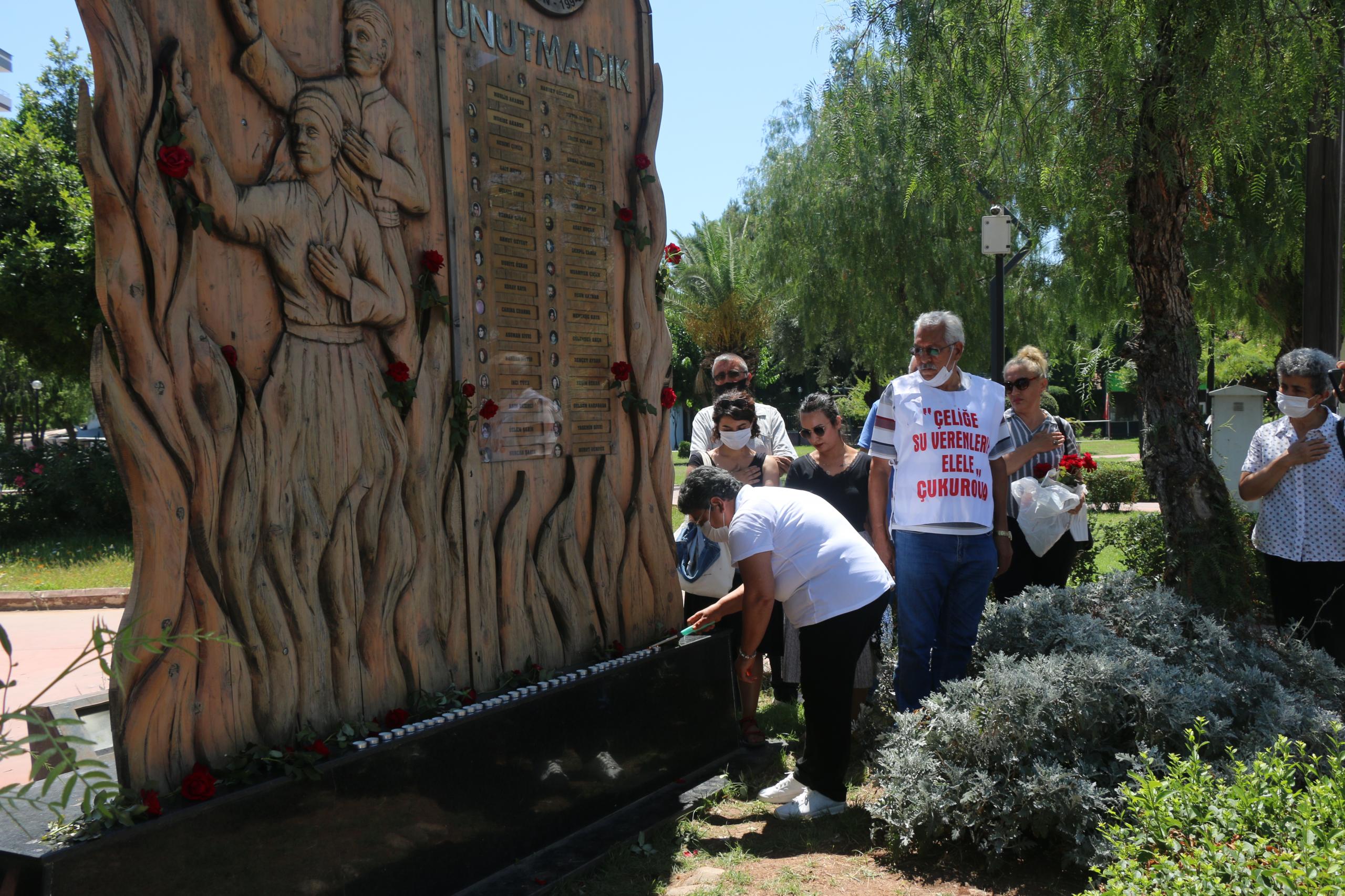 Mersin Cemevi, Sivas Katliamı’na dair Mersin’de bulunan Madımak Anıtı önünde anma düzenledi. Anmada İnanç Kurulu Başkanı Erdoğan Sevim Dede, gulbang okudu, çerağlar uyandırıldı.