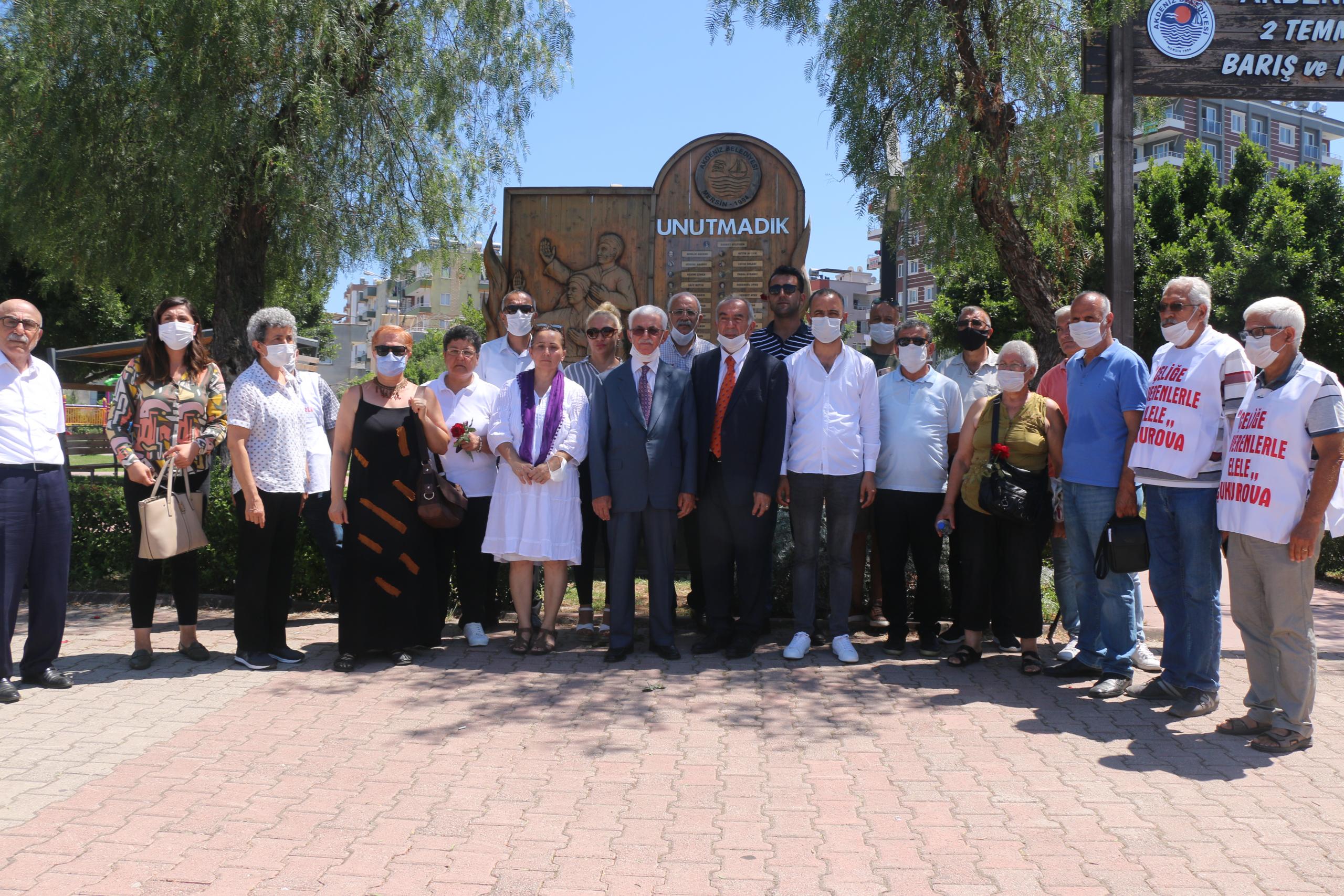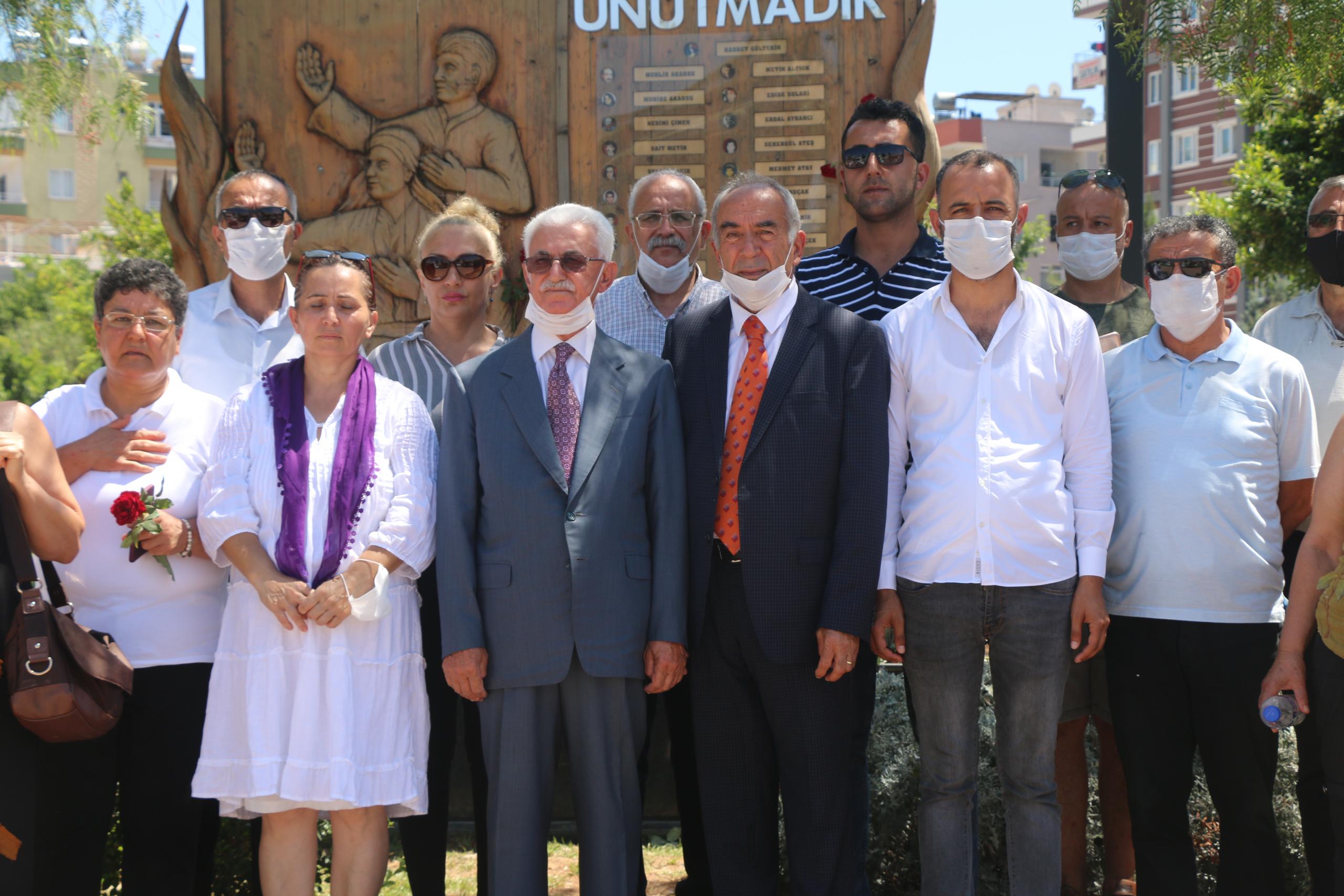 Ardından kısa bir açıklama yapan Mersin Cemevi Başkanı Hasan Kılavuz, “33 aydın şehit edildi ama gönüllerde yaşıyorlar. Önemli olan onların anılarını yaşatmaktır. Her bulunduğumuz yerde şiarımız barış, birliktelik ve kardeşlik olmalıdır. Bizler de bu topraklarda barışı savunmaya devam edeceğiz” dedi.