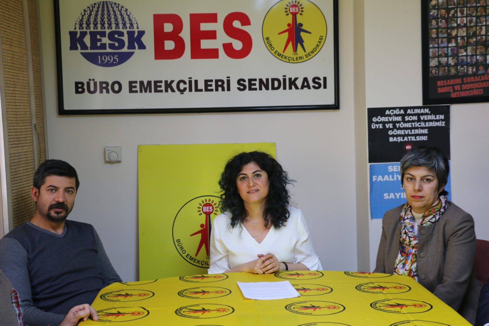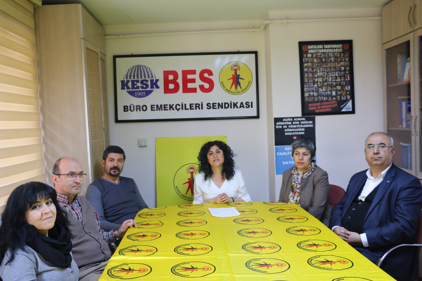 Ankara’da Büro Emekçileri Sendikası (BES) Genel Merkezi’nde gerekli altyapı oluşturulmadan pasaport ve sürücü belgesi işlemlerinin nüfus müdürlüklerine devredilmesine karşı basın açıklaması yapıldı. Basın açıklamasını Merkez Yürütme Kurulu adına Serpil Akpınar okudu.