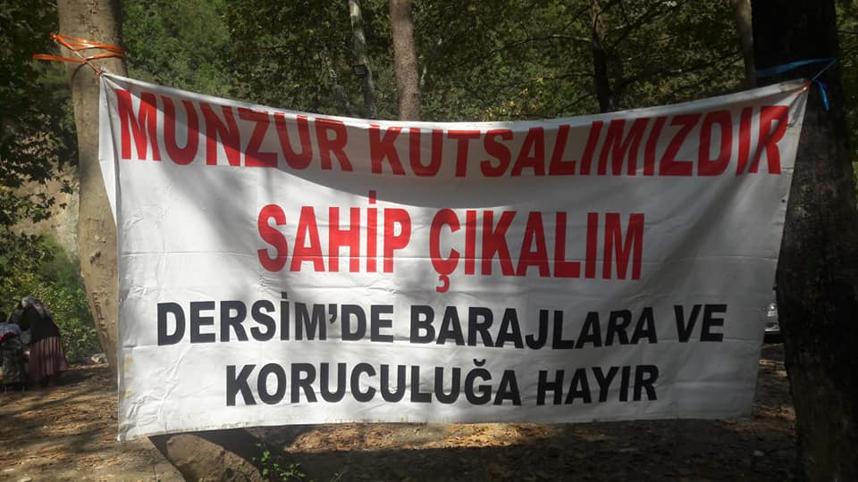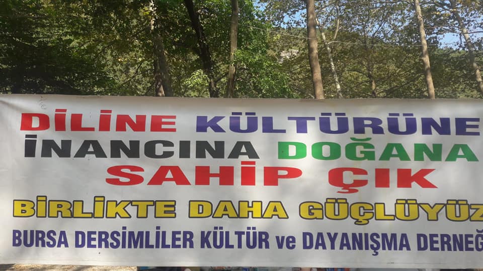 Pikniğin yapıldığı alana”Munzur kutsalımızdır, sahip çıkalım. Dersim’de barajlara ve koruculuğa hayır,””Diline, inancına, kültürüne, doğana sahip çık,” “Dersim’de köy boşaltmalara ve yangınlara karşı sesimize ses ver”pankartları asılarak Dersim’de devam eden yangınlara dikkat çekildi.