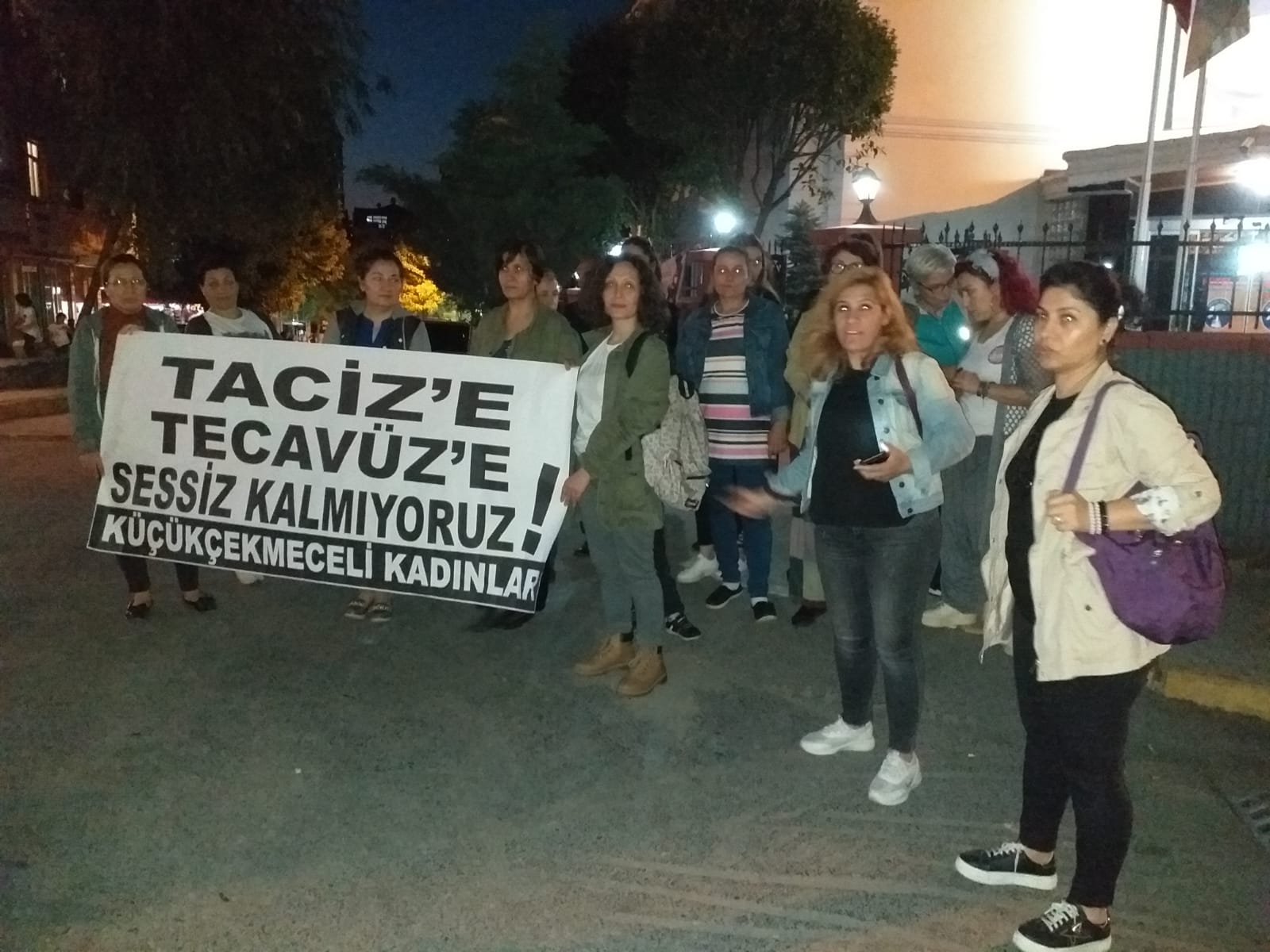 Basın metnini okuyan Huriye Aygüneş, geçtiğimiz günlerde Küçükçekmece’de yaşanan taciz olaylarını şöyle hatırlattı: