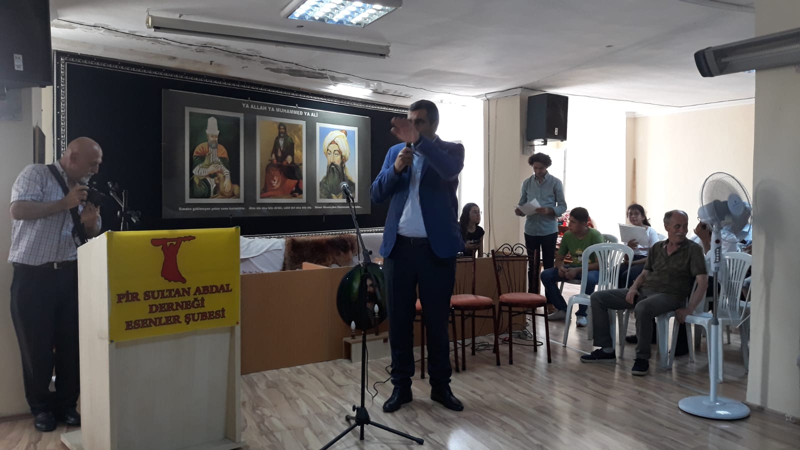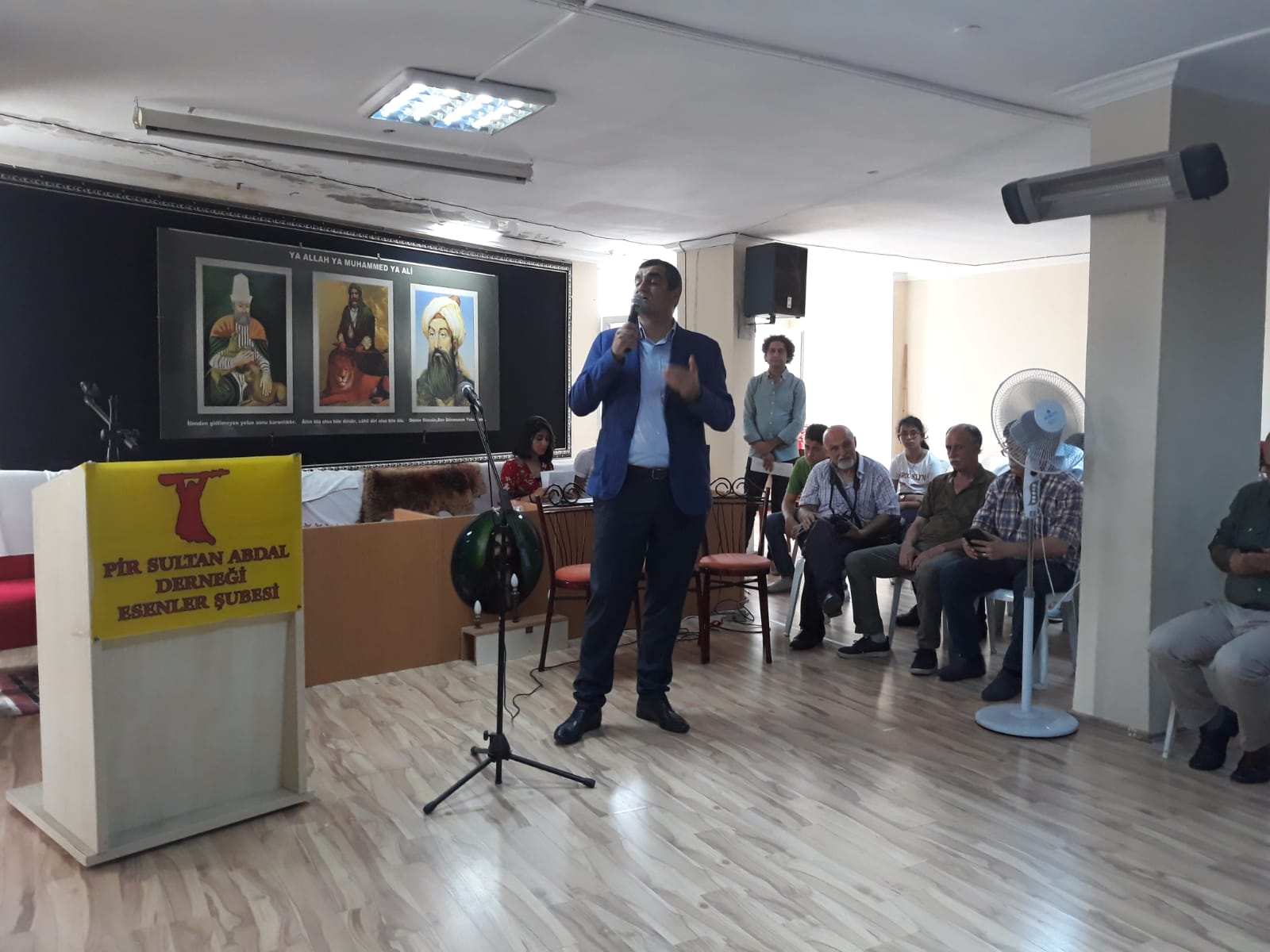 Pir Sultan Abdal Kültür Derneği (PSAKD) Esenler Şubesi ‘Güzel günler göreceğiz’ etkinliği düzenledi. Etkinliğe Esenler’de faaliyet yürüten Anadolu Canlar Cemevi ve Esenler Hacı Bektaş-ı Veli Cemevi yönetimi, PSAKD Ataşehir Şube Başkanı Hasan Gülüm, PSAKD Güngören Şube Başkanı Zeynel Abidin Özbay, PSAKD Zeytinburnu Şube Başkanı Hakan Rakip, PSAKD eski Kartal Şube Başkanı Songül Tunçdemir, HDP İzmir Milletvekili Serpil Kemalbay, CHP İstanbul Milletvekili Ali Şeker, CHP ve HDP Esenler ilçe yöneticileri, gazeteci ve Alevi aktivist Sezgin Kartal katıldı.