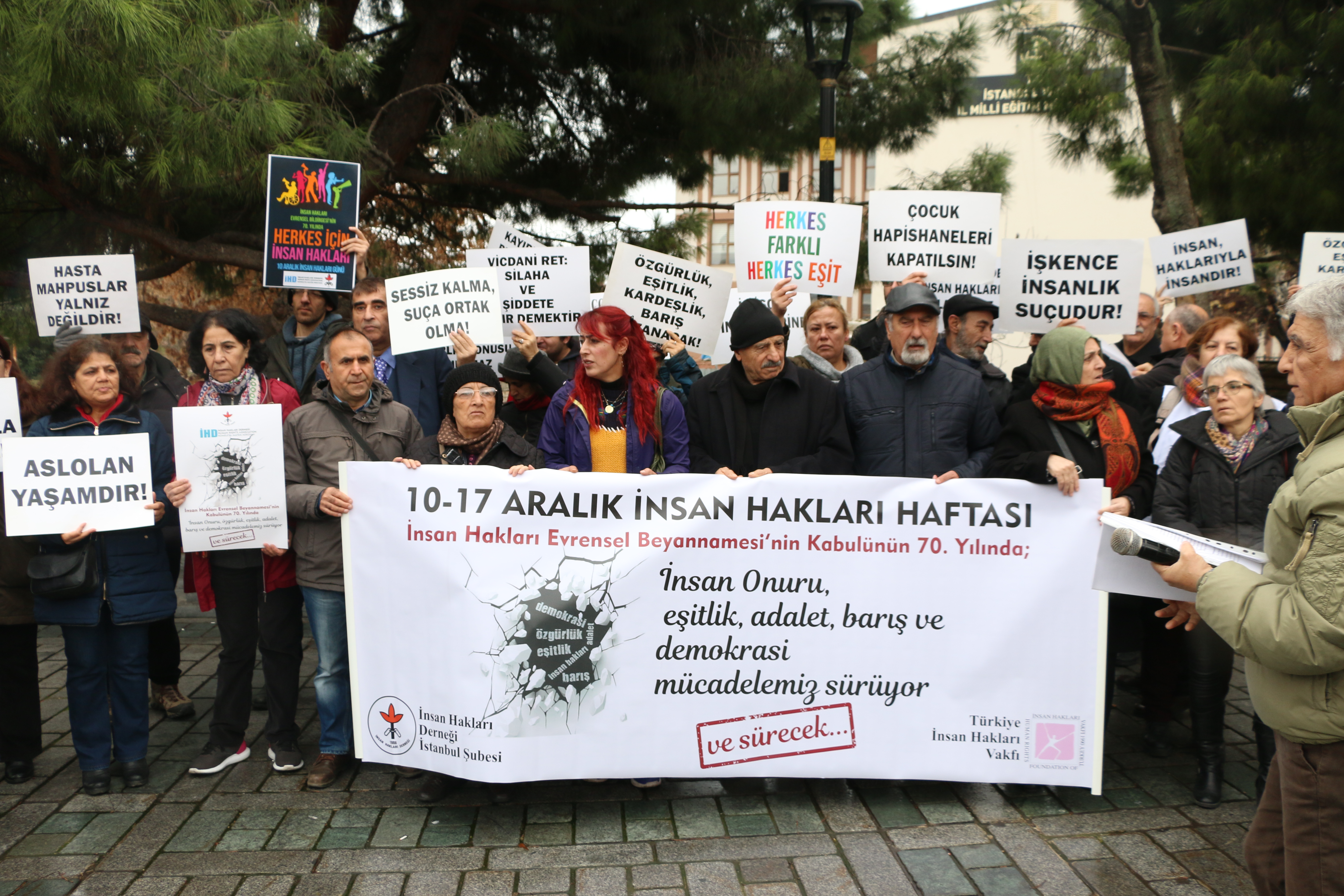 Bugün Birleşmiş Milletler (BM) İnsan Hakları Evrensel Beyannamesi’nin kabul ve ilanının 70. yıl dönümü. 10-17 Aralık İnsan Hakları ve Demokrasi Haftası dolayısıyla İstanbul Sultanahmet Meydanı’nda bir basın açıklaması düzenleyen insan hakları savunucuları, Türkiye’de her geçen gün hak ihlallerinin arttığına dikkat çekti.