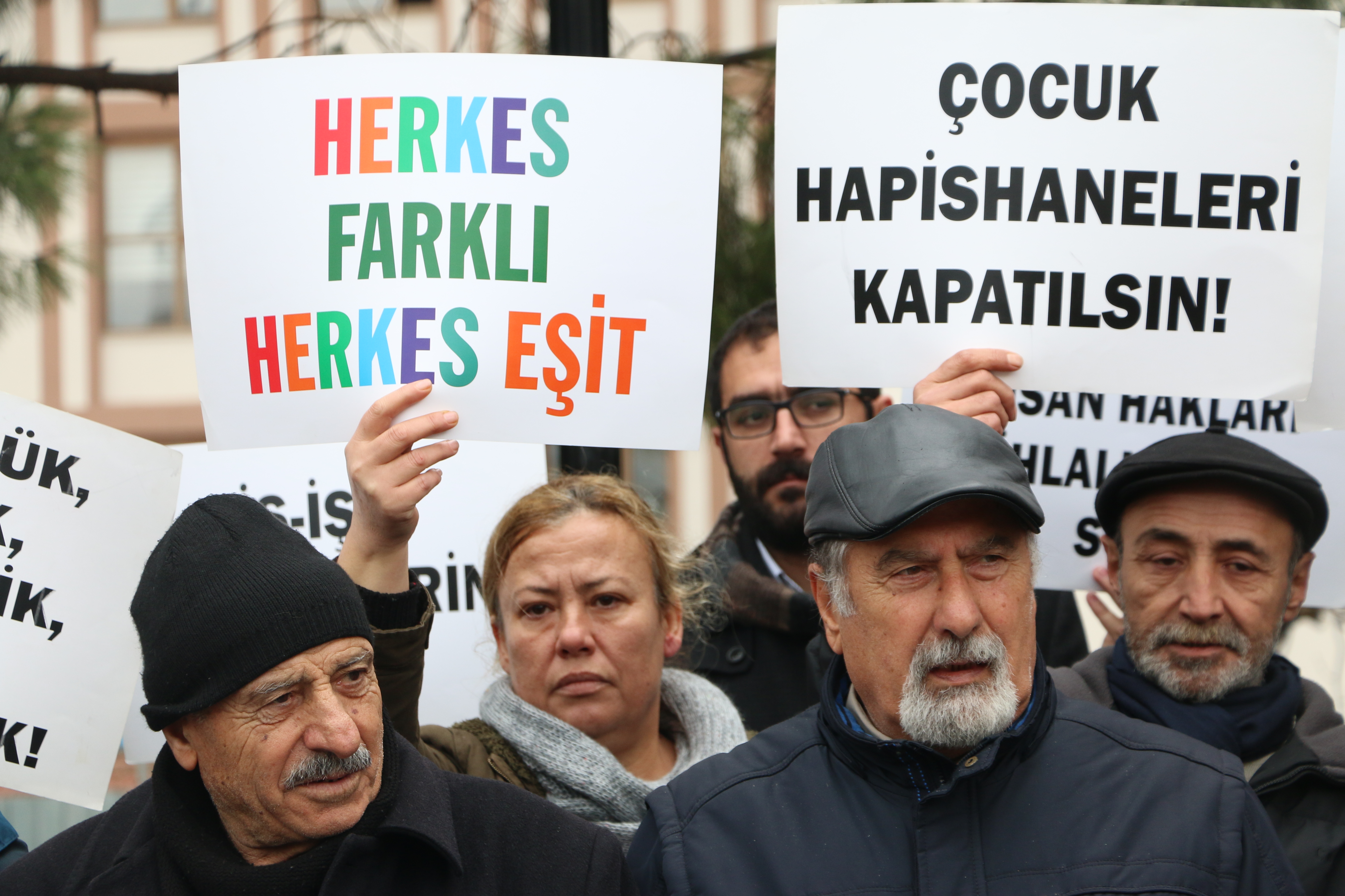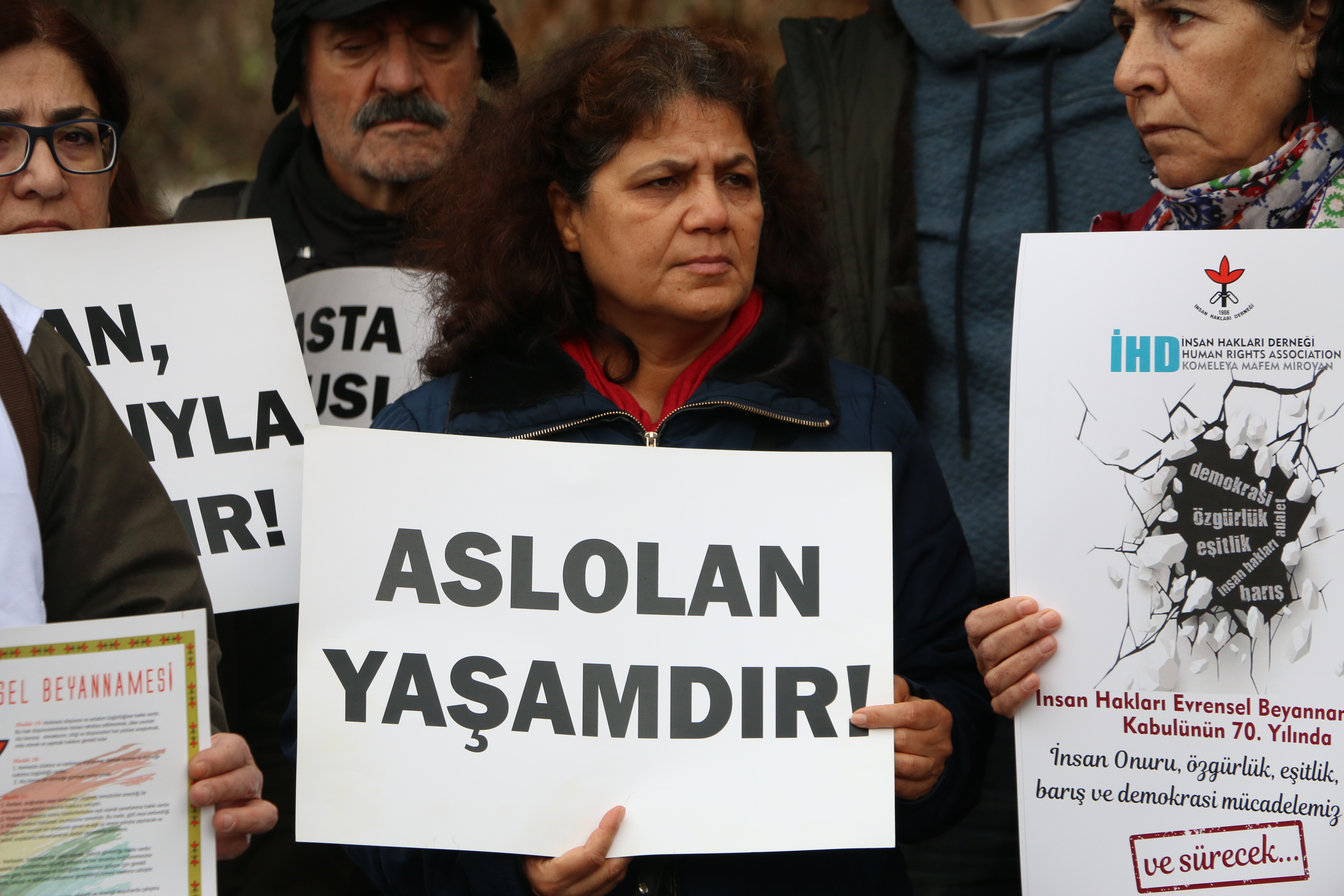 Basın açıklamasına Türkiye İnsan Hakları Vakfı (THİV), İnsan Hakları Derneği (İHD) üyeleri ile Cumartesi İnsanları ve hak savunucuları katıldı. “İnsan Hakları Evrensel Beyannamesi’nin 70. yılında insan onuru, eşitlik, adalet, barış ve demokrasi mücadelemiz sürüyor ve sürecek” pankartının açıldığı eylemde “İnsan haklarıyla insandır”, “Sessiz kalma suça ortak olma”, “Aslolan yaşamdır”, “Çocuk hapishaneleri kapatılsın”, “Herkes için insan hakları”, “Tek tip elbise işkencedir”, “Hapishanelerdeki insan hakları ihlallerine son”, “İşkence insanlık suçudur” yazılı dövizler ile İnsan Hakları Beyannamesi taşındı. “İnsan haklarıyla insandır”, “Herkes farklı herkes eşit”, “Susma suça ortak olma”, “İnsanlık onuru işkenceyi yenecek” sloganları atıldı.