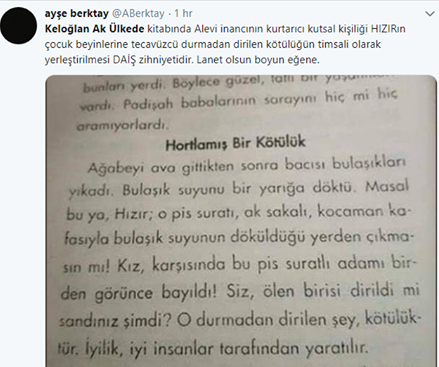 PİRHA- Hızır, Alevilerde kutsal kabul edilen adı ile kötülüklere karşı yardım çağrısında bulunan kişiyi temsil eder. ‘Keloğlan Ak Ülkede’ adlı bir masal kitabında ise Hızır adında bir karakterin masal kahramanı kız çocuğuna cinsel istismarda bulunması ve çocuğun hamile kalması konusu işleniyor. Kitaba sosyal medyadan tepki geldi.