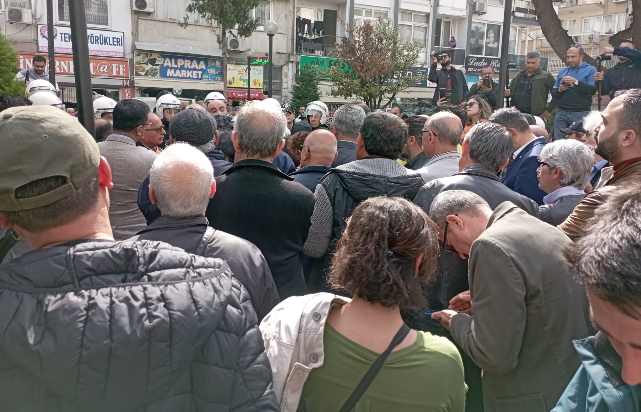 Kızılay’ın çadır ve gıda satışını protesto eden Sol Parti Mersin İl Örgütü ve Halkevleri Mersin İl Örgütü üyelerinin ev baskınlarıyla gözaltına alınmasına ilişkin yapılmak istenen basın açıklaması polis engeline takıldı.