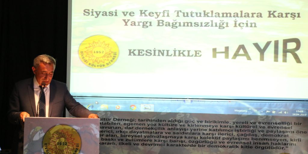 “Burada esas amaçlananın toplumda büyük bir karşılık bulan hayır kampanyasını zayıflatmak, hayır için çalışan yurttaşlara gözdağı vermek olduğu kanaatindeyiz. Bir mitingi satırla basıp cana kasteden kişinin serbest bırakıldığı, ama saldırıya maruz kalan kişinin tutuklandığı bir hukuk anlayışı kamu vicdanında mahkum olmaya mahkumdur. Yakın geçmişte yargıya sızan cemaat yargıçlarının Ergenekon, Kumpas, Oda TV vb. birçok davadaki düzmece iddianamelerle özgürlükleri nasıl gasp ettikleri, insanların yaşamlarını nasıl kararttıkları kamu vicdanında hala tazeliğini korumaktadır. Adalet, bugün adaletsizlik yapanlara da lazım olacaktır. Biz bugüne dek hukuksuz olan her kararın her uygulamanın karşısında durduğumuz gibi bugün de yine hukuksuz olan bu kararın karşısında duruyoruz.”