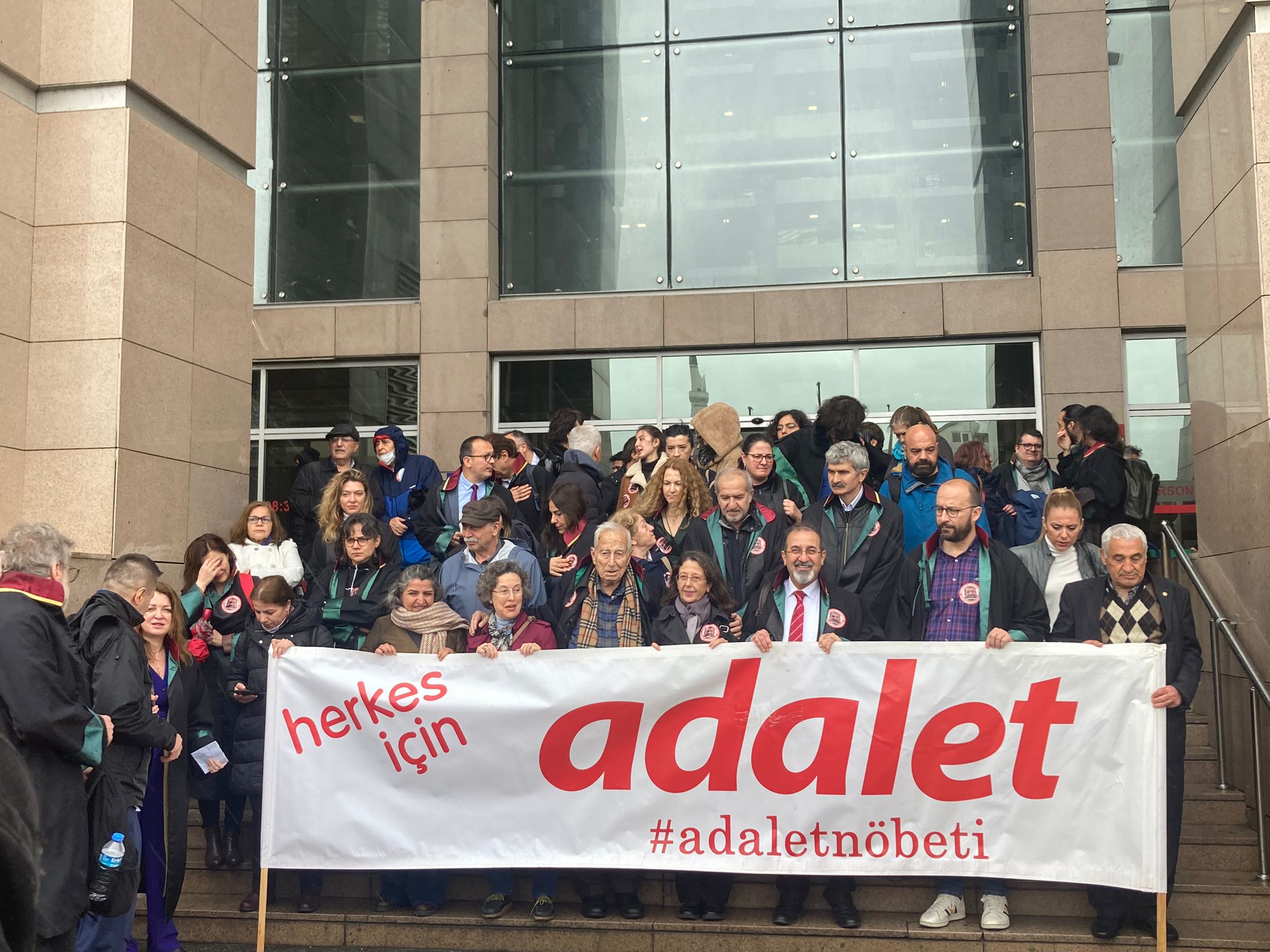PİRHA-1 yıl önce Gezi Davası’nda tutuklanan Mücella Yapıcı, Çiğdem Mater, Hakan Altınay, Mine Özerden, Can Atalay ve Tayfun Kahraman için Çağlayan’da adalet nöbeti yapıldı. Gezi ailelerinden Can Atalay’ın babası Mustafa Atalay adalet nöbetindeki konuşmasında “Adalet sarayının önünde konuşuyoruz. Saray var ama adalet yok” dedi.