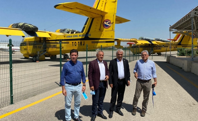 CHP Ankara Milletvekilleri Nihat Yeşil, Servet Ünsal, Yıldırım Kaya ile Trabzon milletvekili Ahmet Kaya, Türk Hava Kurumu (THK) yangın söndürme uçaklarının olduğu hangara giderek konuya dikkat çektiler.