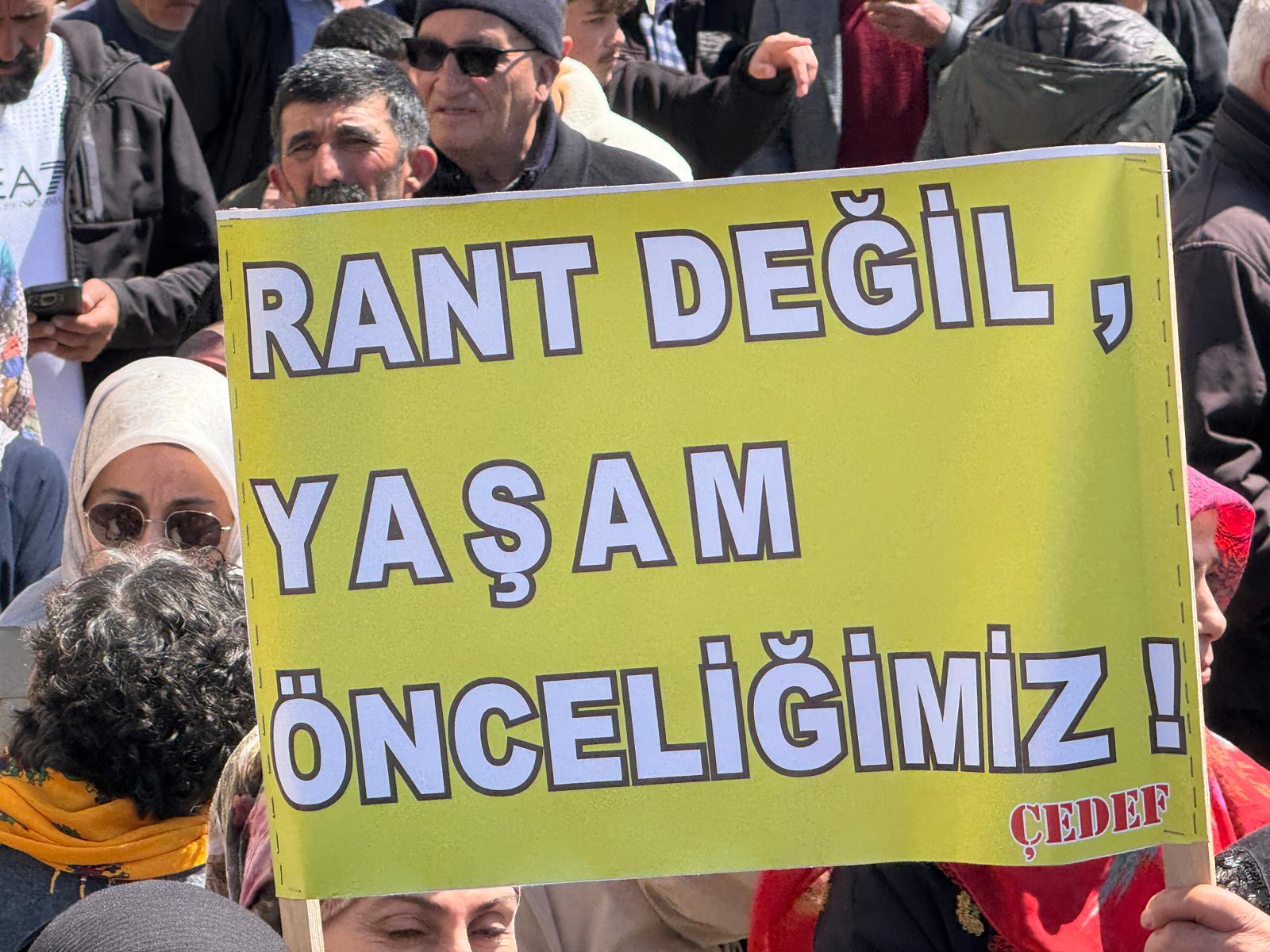 Ekrem Alan konuşmasını, Aşık Veysel’in “Benim sadık yarim kara topraktır“ sözleri ve Cigerxwîn’in birlik vurgusu yapan dizeleriyle bitirirken, meydandan “Bizde satılık toprak yok!” sloganları yükseldi.