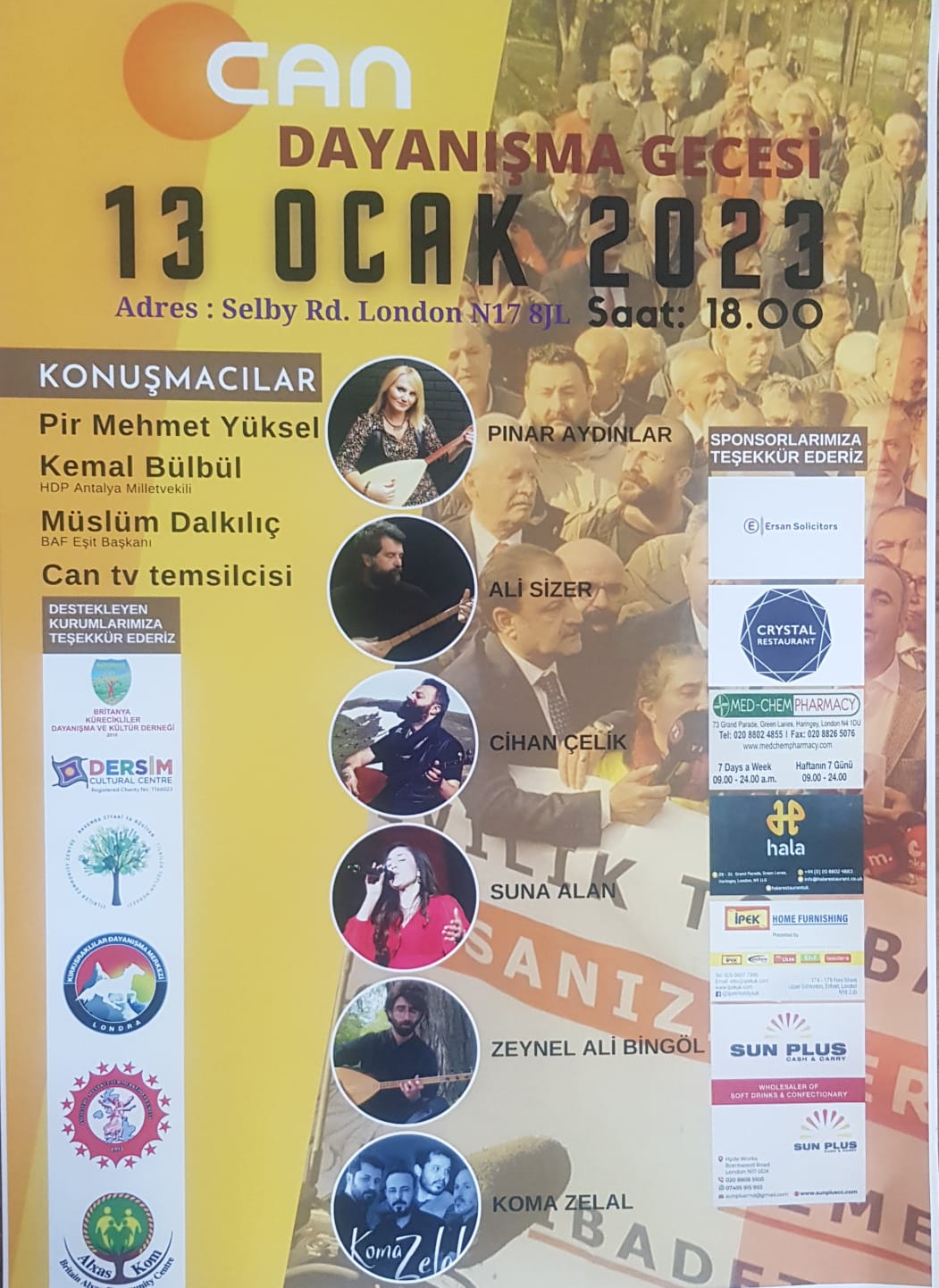 Sanatçı Cihan Çelik: Yeni yılda 13 Ocak cuma akşamı Londra’da CANTV’yle dayanışma gecesinde sizlerle olacağım. Hepinizi bekliyorum.