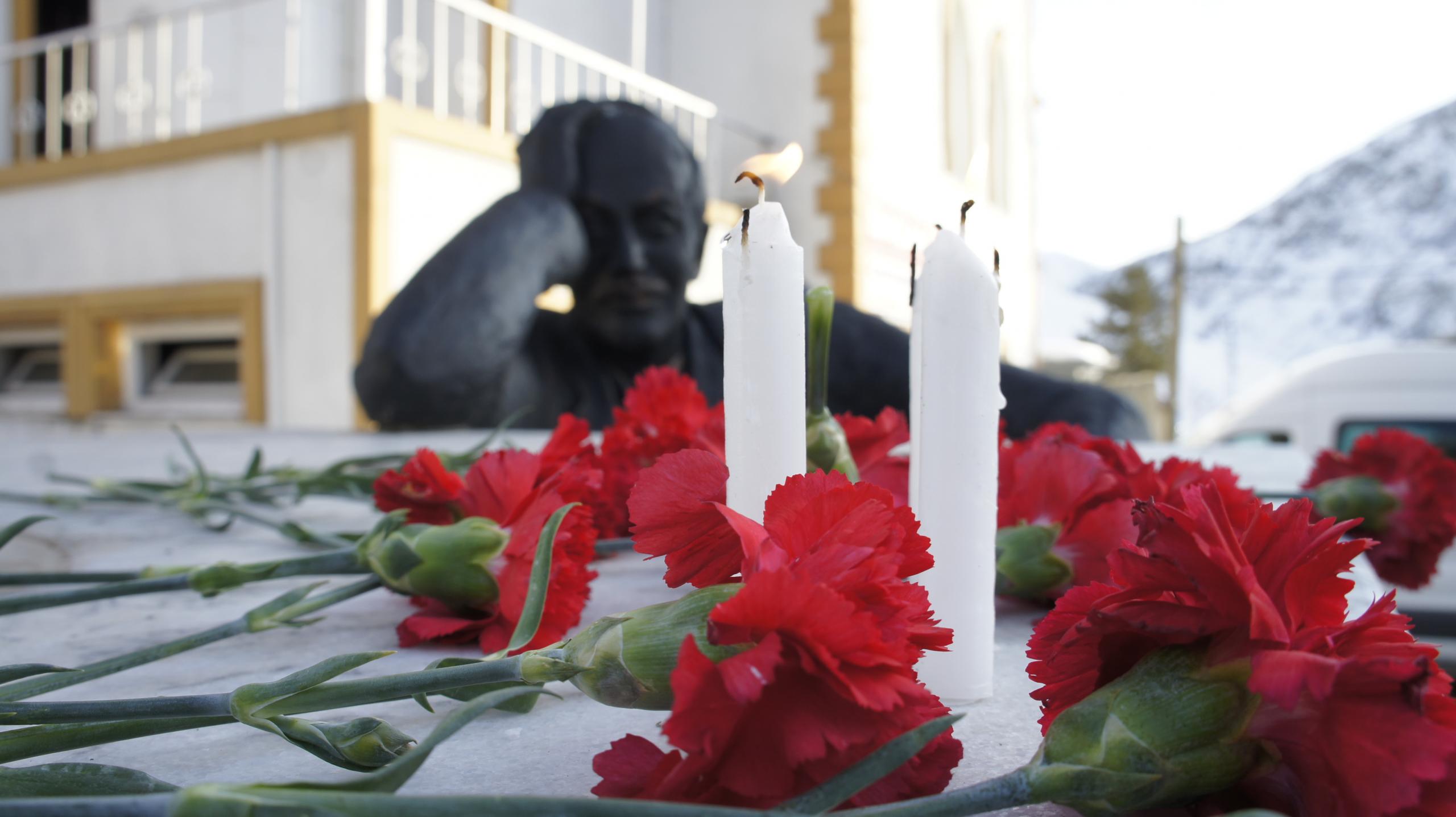 Anmada, şiirler okunarak heykeli önüne karanfiller bırakılarak çılalar yakıldı.