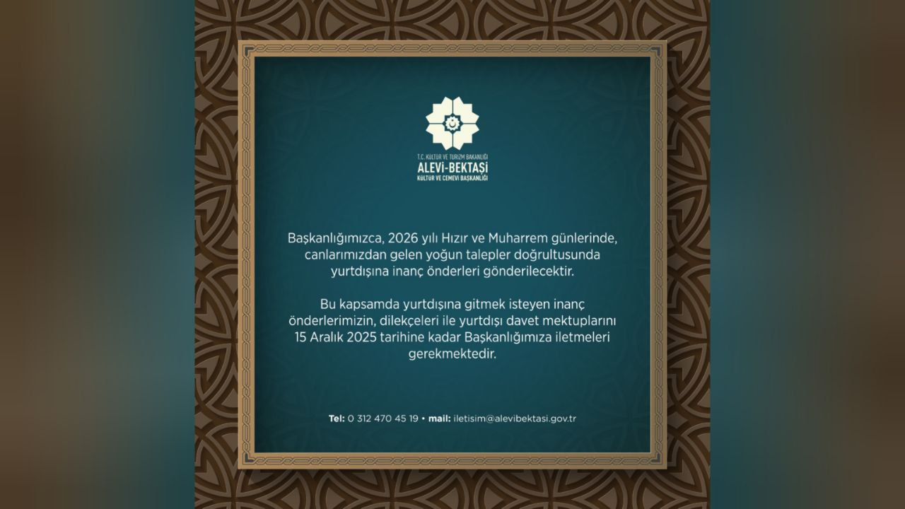 Alevi Bektaşi Cemevi Başkanlığı’nın sanal medya hesabında yayımlanan yeni ilanda 2026 yılı Hızır ve Muharrem oruçlarında yurtdışına gönderilmek üzere “inanç önderi” aradığı duyuruldu.