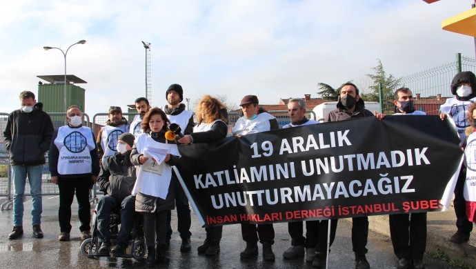 İnsan Hakları Derneği (İHD) İstanbul Şubesi ve Tutsaklara Dayanışma İnisiyatifi (TDİ), “Hayata Dönüş Operasyonu” adı verilen 19 Aralık Katliamı’nın 21’inci yılında yaşamını yitirenleri andı. Ümraniye Cezaevi önünde yapılan açıklamada, “19 Aralık Katliamını unutmadık unutturmayacağız” yazılı pankart açıldı. İHD İstanbul Şubesi Başkanı Gülsen Yoleri, katliam sonrası açılan davaya dikkati çekerek, katliamın cezasızlık ile ödüllendirilmek istenildiğini söyledi. Katliamda tutukluların vahşice katledildiğini anımsatan Yoleri, sorumlular yargılanana kadar katliamı unutturmayacaklarını ifade etti.