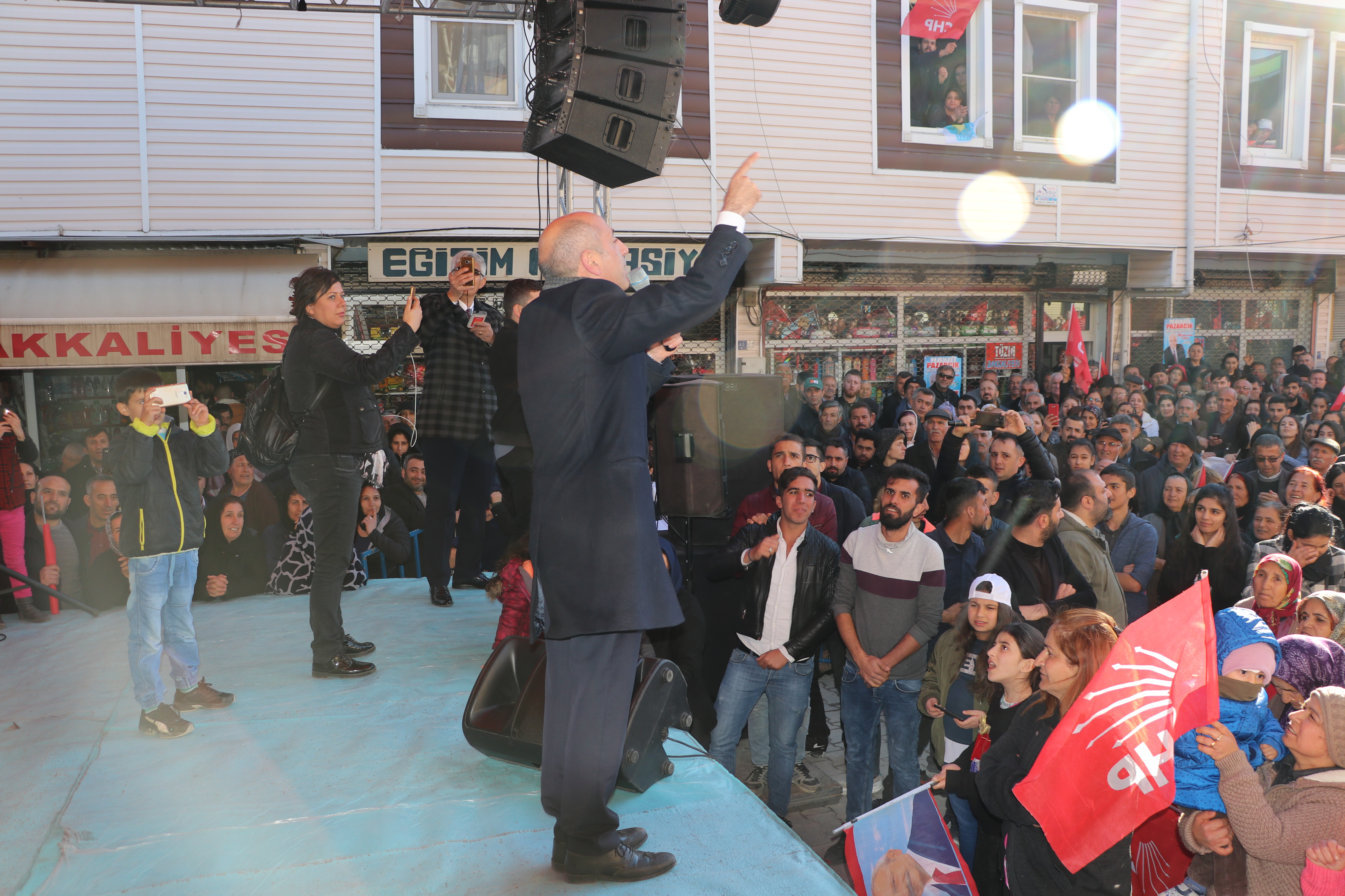 “Narlı Antep ve Maraş arasında ikisine yarım saat mesafede şirin bir yer ve güzel bir coğrafyası olan bir kent. Ama hakkettiği hizmetleri son beş yılda almamıştır. Bizler belediyeyi kazandığımız taktirde Narlı’nın hakkettiği hizmetleri yapacağız. Bir cemevi ve bir taziye evi var bunlar yeterli mi elbette değil. İkinci bir cemevi ve taziye evi yapacağız. Sizler alanda CHP’ye belediyeyi kazandıracağınızın sözünü verdiniz, ben de size buradan söz verdiğimiz projeleri yapma sözü veriyorum.”