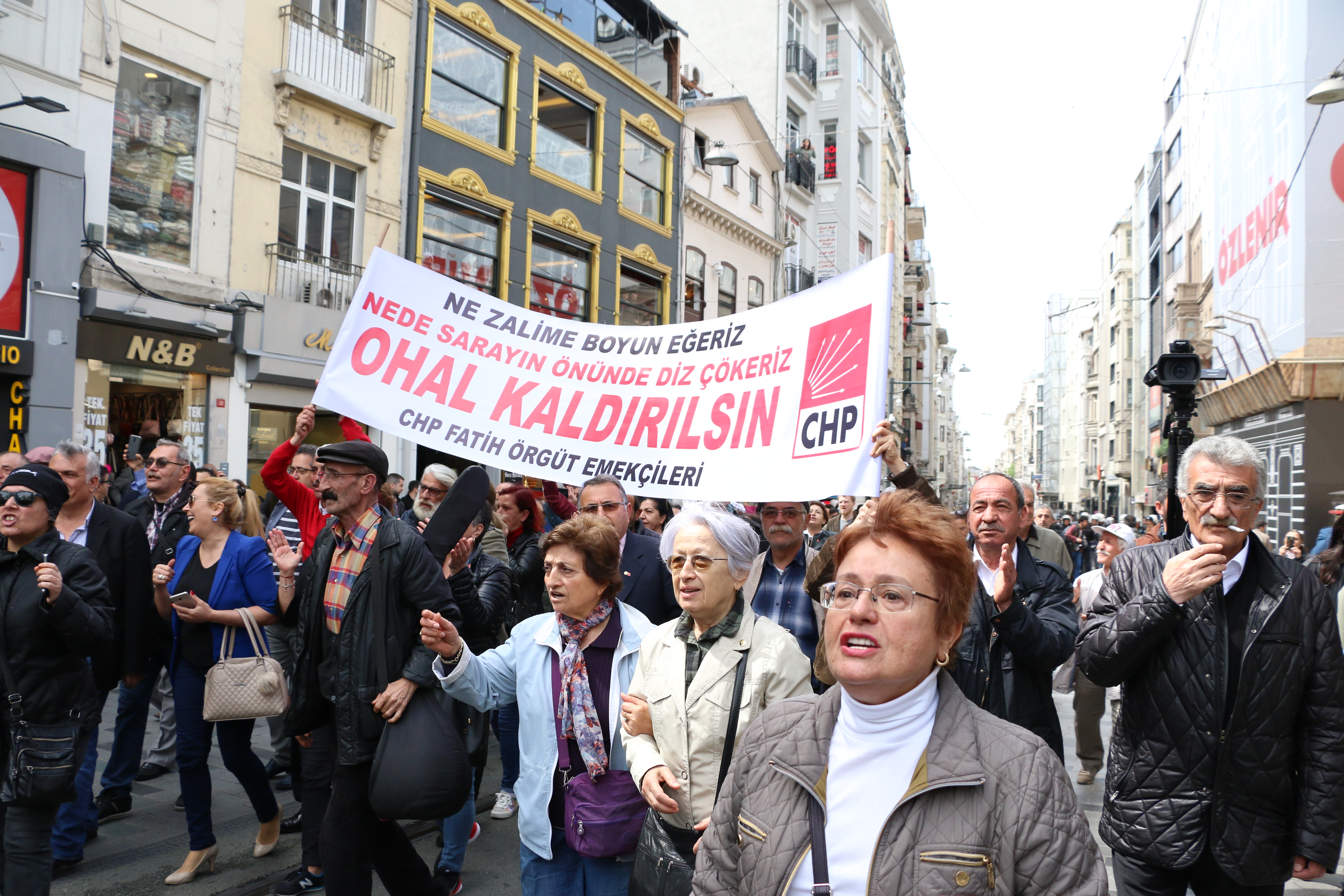 CHP 81 ile “OHAL değil demokrasi istiyoruz” şiarıyla oturma eylemi yaptı. İstanbul’da Taksim’de yapılan eylem için saat 11:30 civarında Taksim Meydanı’na gelen CHP İstanbul İl Başkanı Canan Kaftancıoğlu ve partililer yoğun güvenlik önlemi ve barikatlarla karşılaştılar.