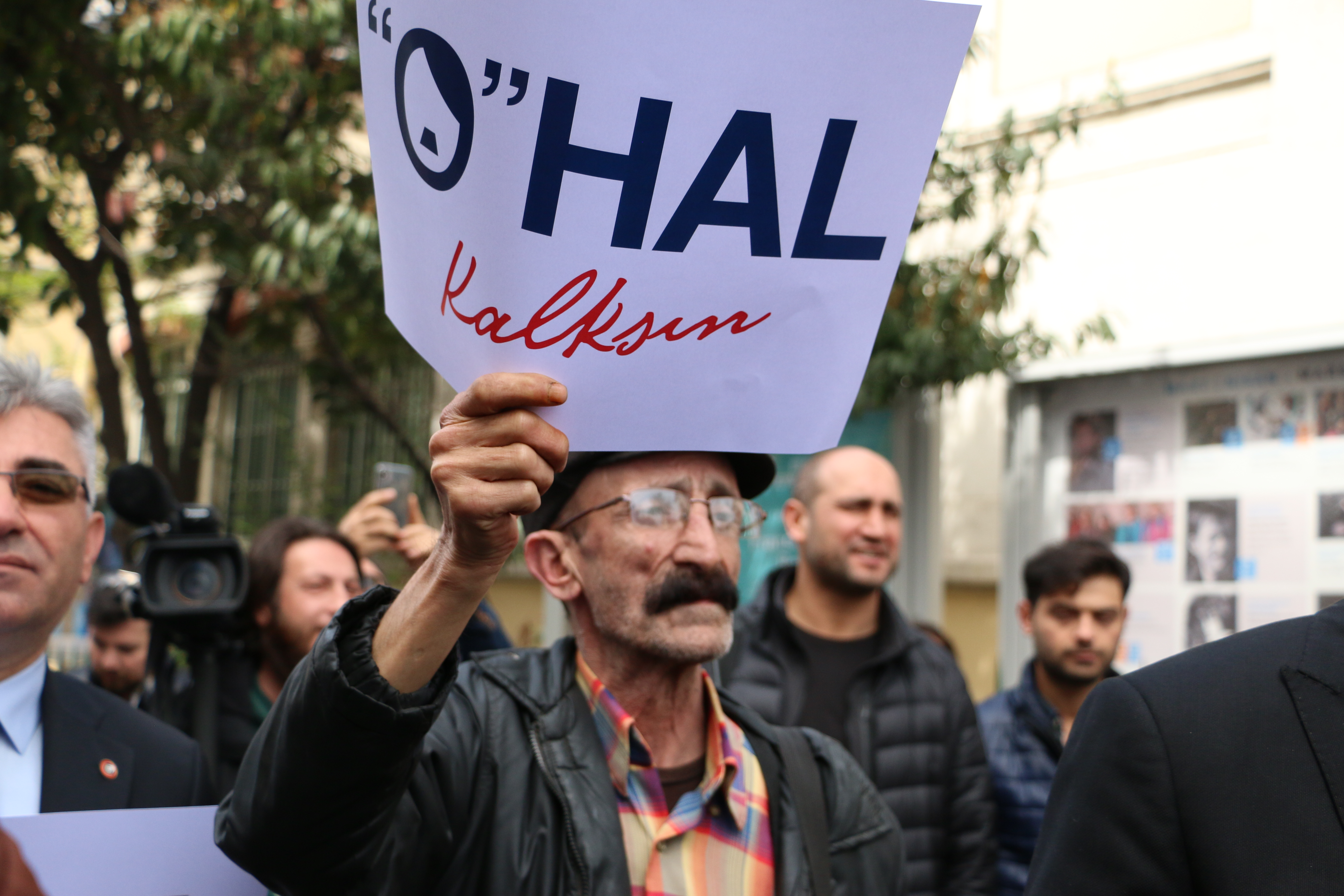 “OHAL nedir? OHAL, 10 Ekim’de katledilen çocuklarını anmak isteyen anne ve babalara sıkılan biber gazıdır. OHAL, ekmeğinin peşindeki tütün üreticisine vurulan coptur. OHAL, Ahmet Şık başta olmak üzere hayatını FETÖ ile mücadeleye adamış gazetecileri zindanlara atmaktır. OHAL, işçi grevlerini ertelemek, grev çadırlarına müdahale etmektir. OHAL, işlerini geri almak için ölümü göze alarak bedenini açlığa yatıran Nuriye Gülmen ve Semih Özakça’nın ölüm tehlikesini görmeyen hükümet inadıdır. OHAL, dünyaca ünlü kimi bilim insanlarını FETÖ yalanıyla üniversitelerden atmaktır. OHAL, tiyatro oyunlarını yasaklamaktır. OHAL, muhaliflerini ‘terörist’ olarak tanımlayabilme cüretidir. OHAL, Ankara Kızılay’da İnsan Hakları Anıtı’nı gözaltına almaktır. OHAL, madende oğlu dört yıldır yatan anaya; artık yürüyemezsin, yasak artık demektir. OHAL, on binlerce taşeron işçiyi haksız bir şekilde kadro dışı bırakmaktır. OHAL, Boğaziçi Üniversitesi’ndeki öğrencilerin “okuma hakkı”nı elinden alabileceğini söylemek ve öğrencileri tutuklatmaktır. OHAL, milli iradeyi yok sayarak, belediye başkanlarını görevden uzaklaştırmak, belediyelere kayyım atamaktır. OHAL, laik eğitim bildirisi dağıtmak isteyen öğrencinin gözaltına alınması, 16 Nisan referandumunda “hayır” propagandası yapan vatandaşın kolunun kırılmasıdır. OHAL, seçilmiş milletvekillerini hukuksuz bir şekilde tutuklatmak ve yargılatmaktır. OHAL, hakimlerin, savcıların bir parti genel başkanı önünde iliklediği cüppelerdir. OHAL, yasamayı, yürütmeyi ve yargıyı tek adamın iki dudağının arasına hapsetmektir. OHAL, doların 4 TL’yi, avronun 5 TL’yi aşmasıdır, Türk Lirası’nın kaybettiği değerdir. OHAL, satılan şeker fabrikası, açlık sınırı altındaki asgari ücret, artan enflasyondur. OHAL, Twitter’daki 280 karakterden, Facebook’taki ‘beğen’ butonundan korkmaktır. OHAL, 12 Eylül cuntasına özenenlerin, askeri darbe dönemlerine rahmet okuttuğu bir düzenin adıdır.”