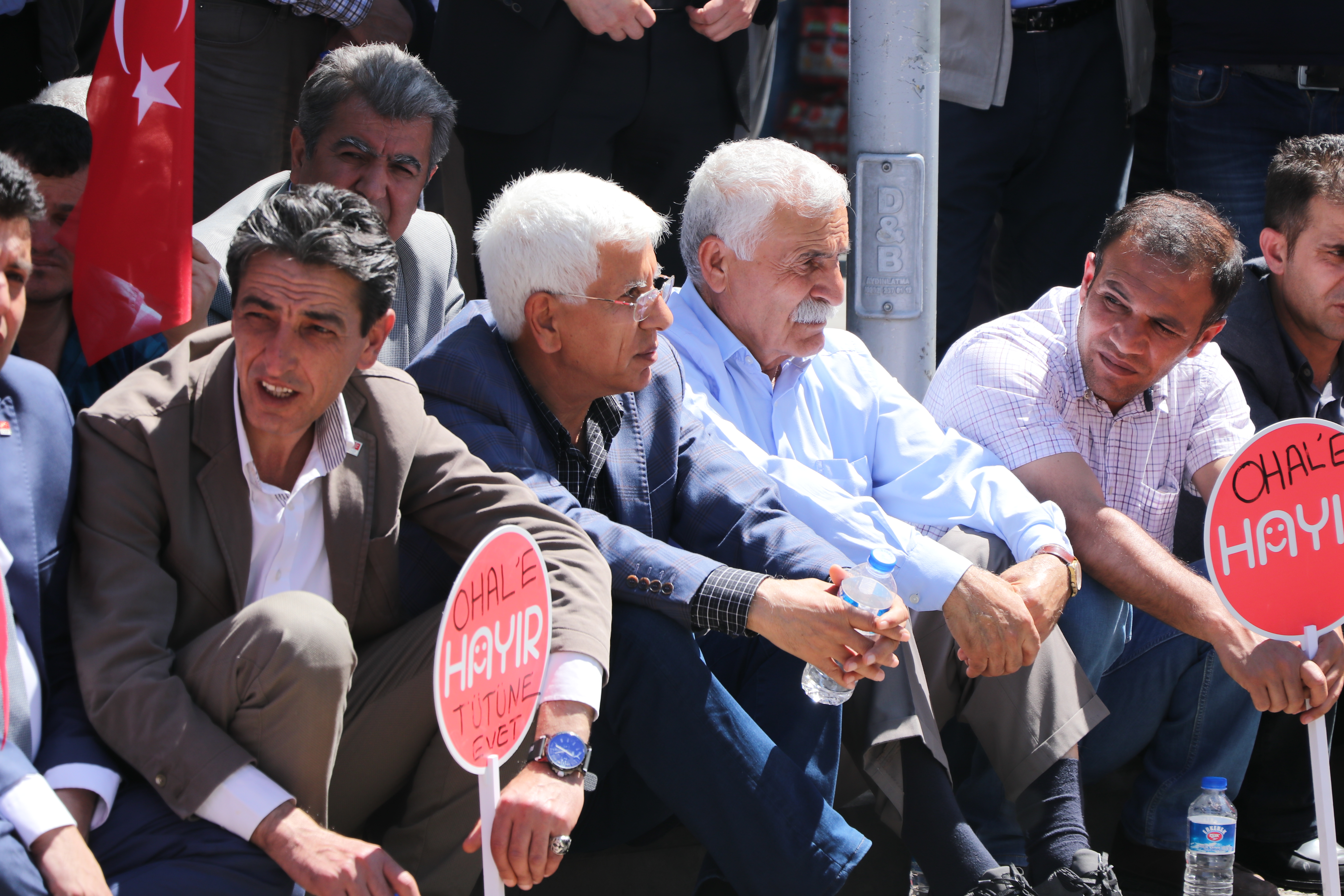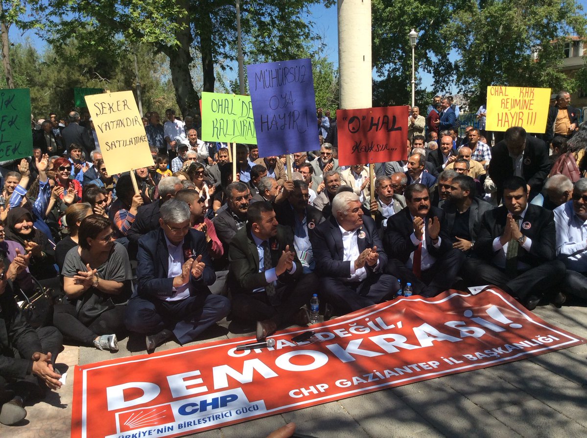 CHP referandumun yapıldığı 16 Nisan’ın yıl dönümünde 81 ilin kent merkezlerinde basın açıklaması ve oturma eylemi için alana çıktı. “OHAL değil demokrasi istiyoruz” sloganıyla Adıyaman demokrasi parkında bir araya gelen CHP’liler, “Faşizme karşı omuz omuza” “Direne direne kazanacağız”, “Hak, hukuk adalet” “Tütünüme dokunma” sloganları atarak, “İstikbal için cesaret” “OHAL değil demokrasi” “OHAL’e hayır” dövizleri taşıdı.