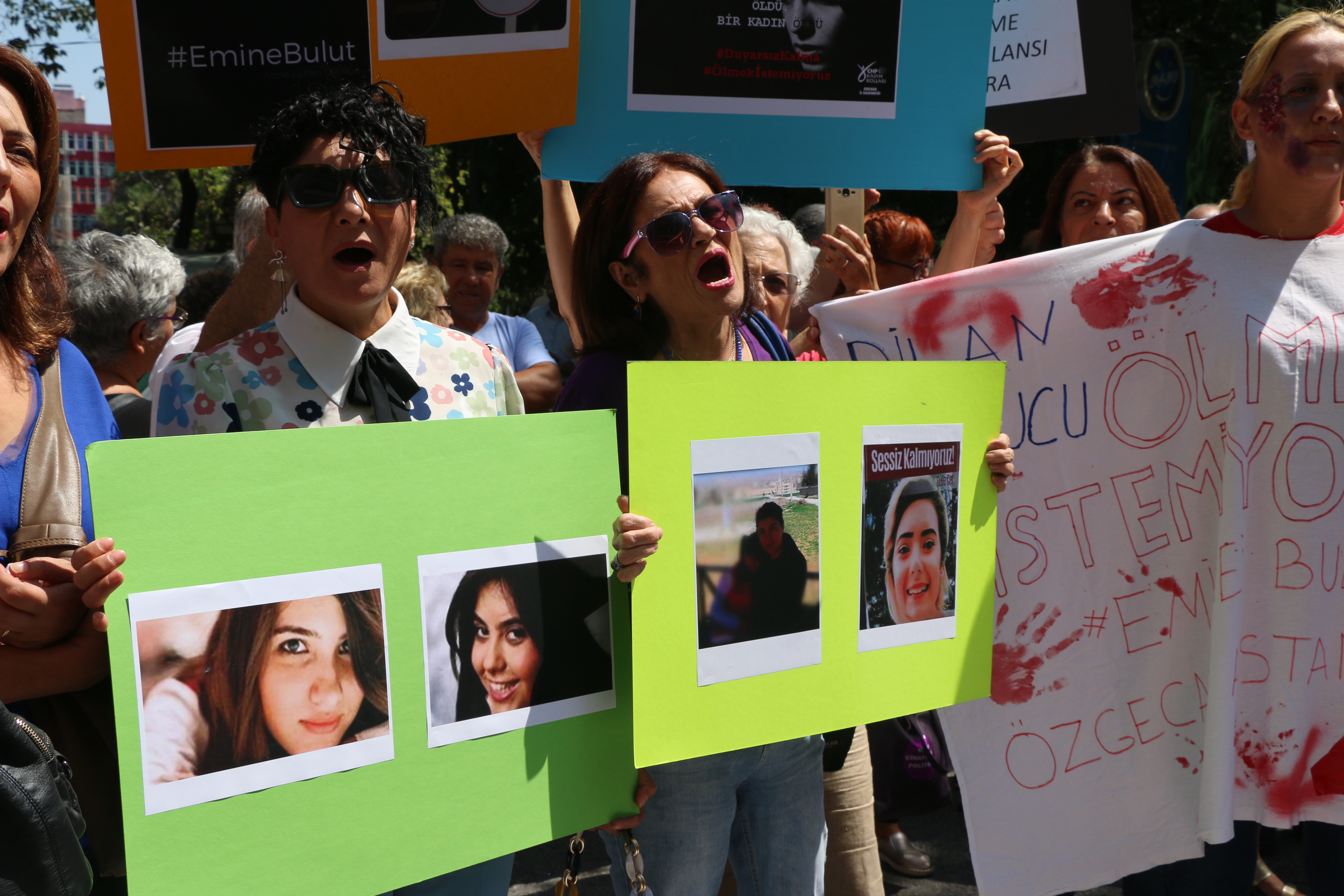 Eski eşi tarafından, çocuğunun gözleri önünde katledilen Emine Bulut için ülke genelindeki eylemler sürüyor. Ankara’da bir araya gelen CHP’li kadınlar “Susmuyoruz, korkmuyoruz, itaat etmiyoruz. Kadın cinayetleri politiktir” sloganları ile günden güne artan kadına dönük şiddet eylemlerini protesto etti.