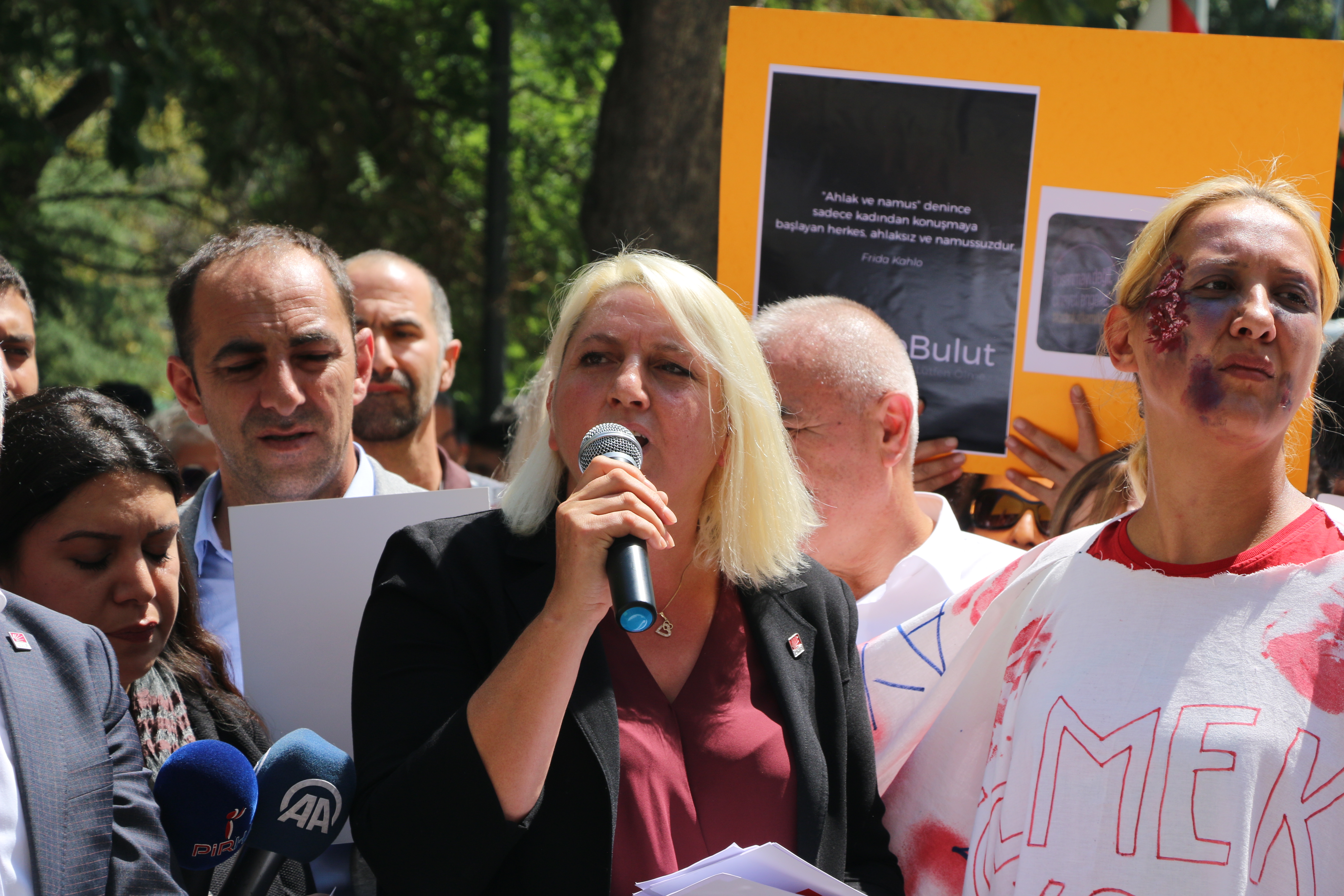 PİRHA – Emine Bulut cinayeti ardından CHP’li kadınlardan da tepki geldi. CHP Ankara İl Binası önünde eylem yapan kadınlar, “İstanbul Sözleşmesi tam olarak uygulanmadığı için, katil erkeklere ödül gibi indirimlere son verilmediği sürece bu cinayetler bitmeyecek.” dedi.