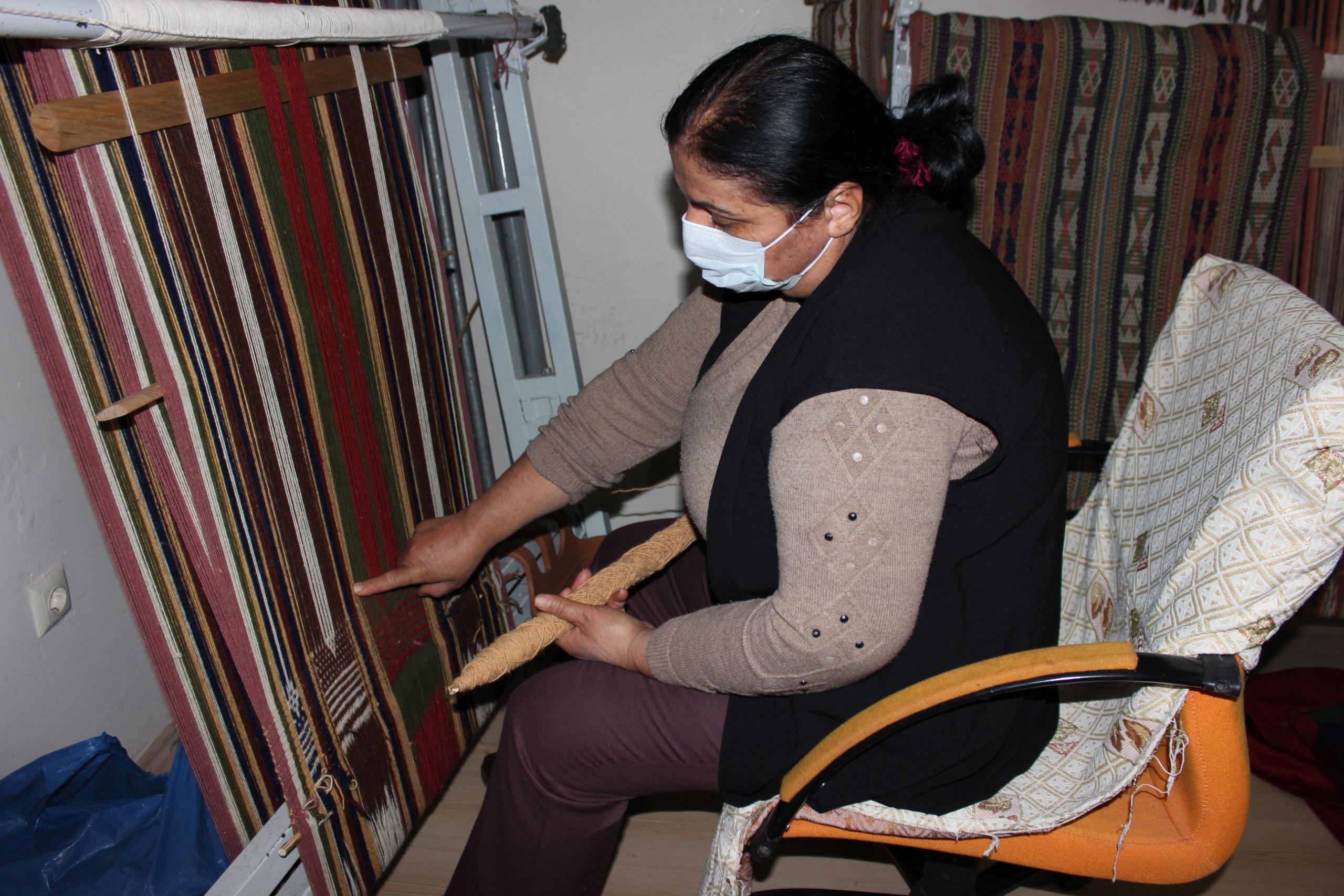 “Eskiden kullanılan ipler büyüklerimiz tarafından koyunlardan kırpılırdı. Ardından o ipleri tarayıp giyindikten sonra boyarlarmış. Ama şimdi hepsi fabrikasyon. Şimdilerde o işi yapan kimse yok. Bu bizim yöresel dokumamızdır. Annelerimiz buna ‘cecim’ derdi ama bizim zamanımızda’ cicim’ diye geçiyor. Benim amacım öğrenci yetiştirip ileriki nesillere cicimi aktarmaktır. Sadece burada dokuyup birilerine vermek değil amacım. Severek yaptığım için terapi gibi oluyor. Motif içinde motif çıkarmak o kadar güzel ki”
