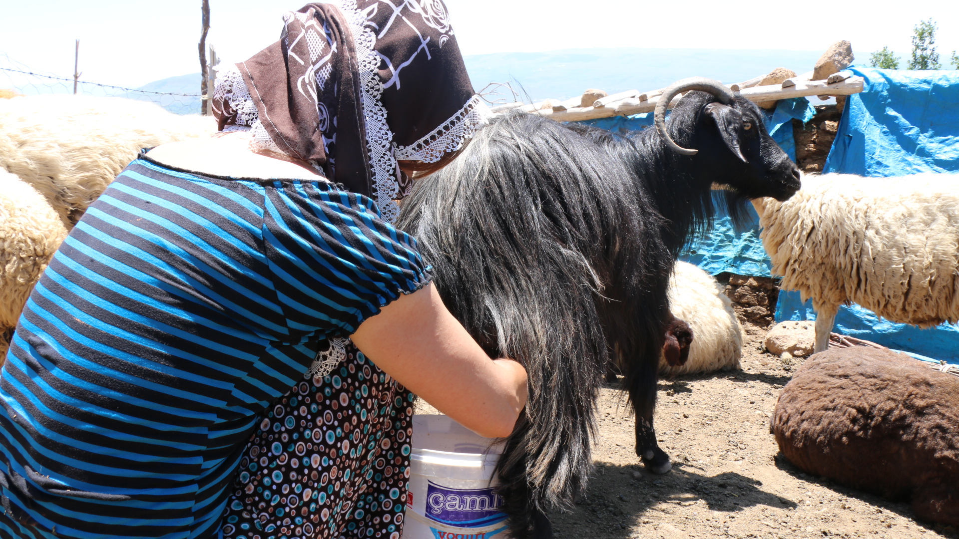 Çiğdem Doğan’ı öğlen saatlerinde köye gelen koyunları sağarken görüyoruz. Elindeki kovayla keçi ve koyunlarını sağarken sorularımıza da cevap veriyor. Sağdıkları sütleri öncelikle yoğurt yaptığını söyleyen Doğan, “Evde yoğurt yoksa önce yoğurt yapıyorum kalan sütü ise ya peynir yapıyorum ya da makineden geçiriyorum” diyor. Makineden geçirdiği sütten yaptığı yağı ya da peynirleri satarak ev ekonomisine katkı yapmaya çalıştığını da ekliyor.