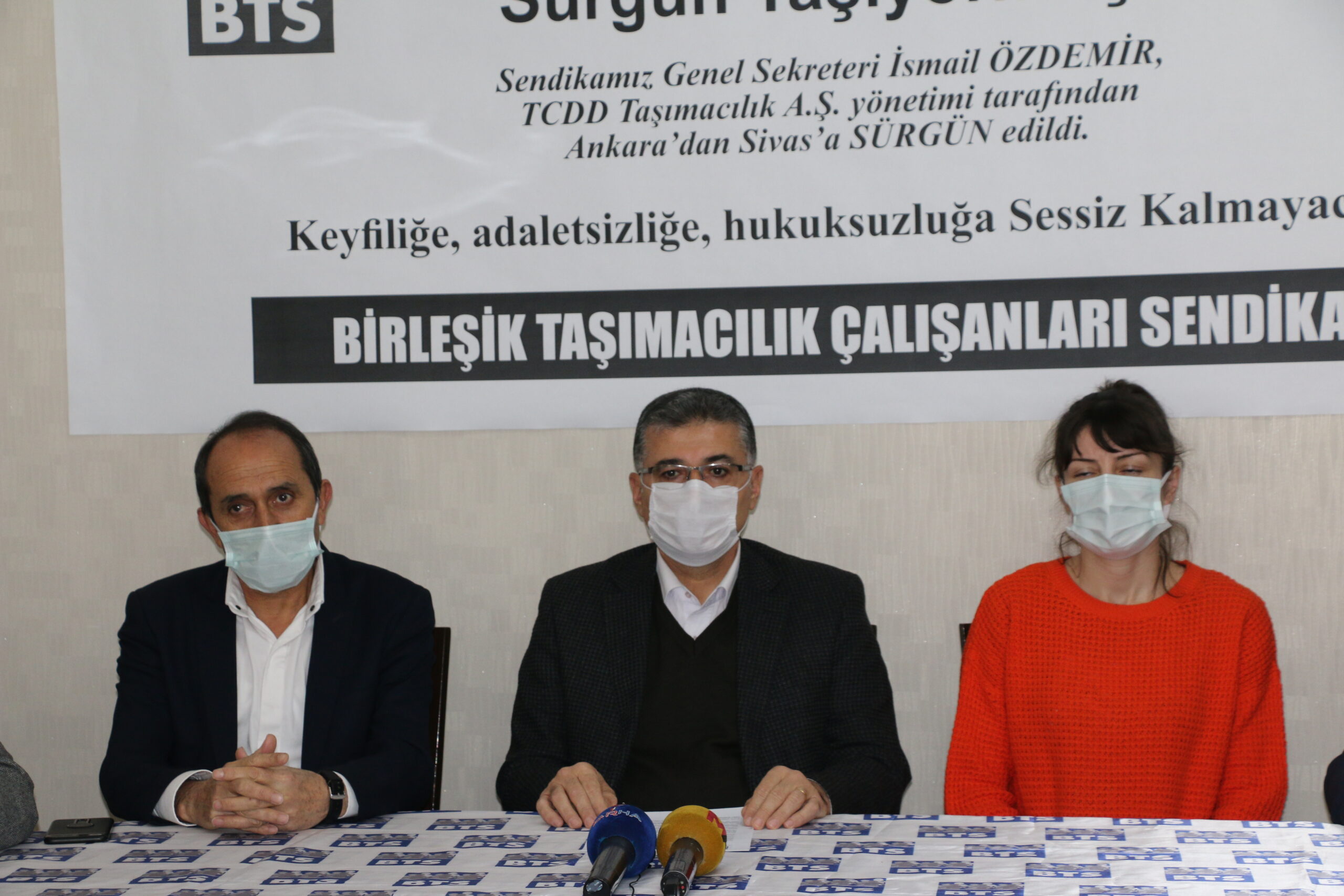 “TCDD Taşımacılık A.Ş. yönetimi, gerçeklerin ortaya çıkmasını sağladığı için sendikamız BTS’yi kendine hedef olarak belirleyip, sendikamız üye ve yöneticilerine karşı yoğun bir saldırı başlatarak, sendikamız Genel Sekreteri İsmail Özdemir’i hukuka aykırı bir şekilde, pandeminin en yoğun olduğu bu süreçte 3 ay süre ile geçici görevlendirme adı altında Sivas’a sürgüne göndermiştir. Sendikamız üye ve çalışanları demiryollarında tekerin dönmesi, yük ve yolcu taşımacılığının artması için yıllardır emek verip ter dökmektedir. Taşımanın artması, Çin’e demiryolu ile taşıma yapılması öncelikle biz demiryolu emekçilerini sevindirir. Bakış açımız nettir: yük ve yolcu taşımacılığın artmasını, emekçilerin örgütü olarak istemekte ve desteklemekteyiz. TCDD Taşımacılık A.Ş. yönetimini; Sendikamız Genel Sekreteri İsmail Özdemir’in sürgün kararını geri almaya, sendikamıza üye ve yöneticilerine yönelik baskıya son vermeye ve aklı-selim bir şekilde yasa ve yönetmeliklere uygun davranmaya davet ediyoruz.”