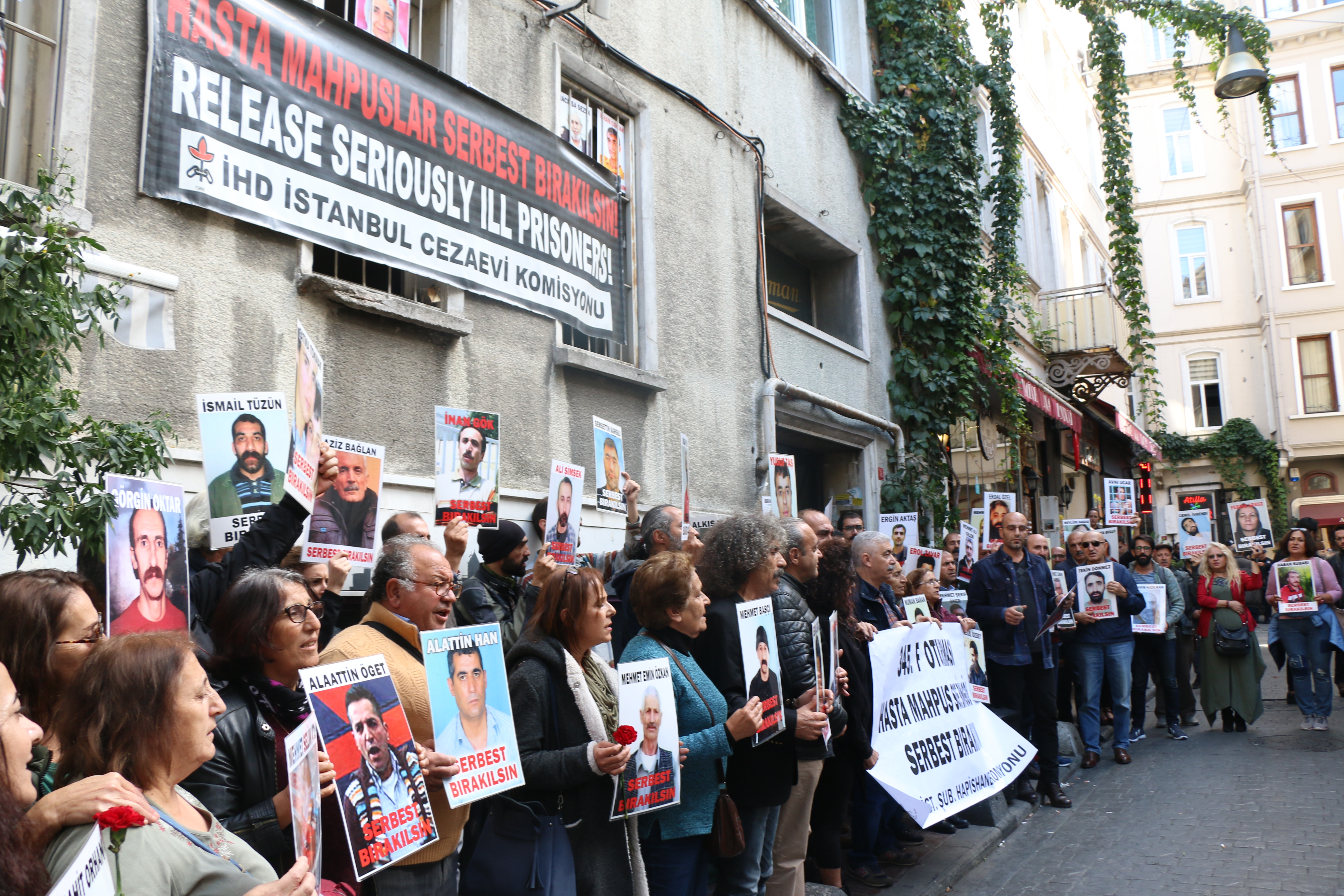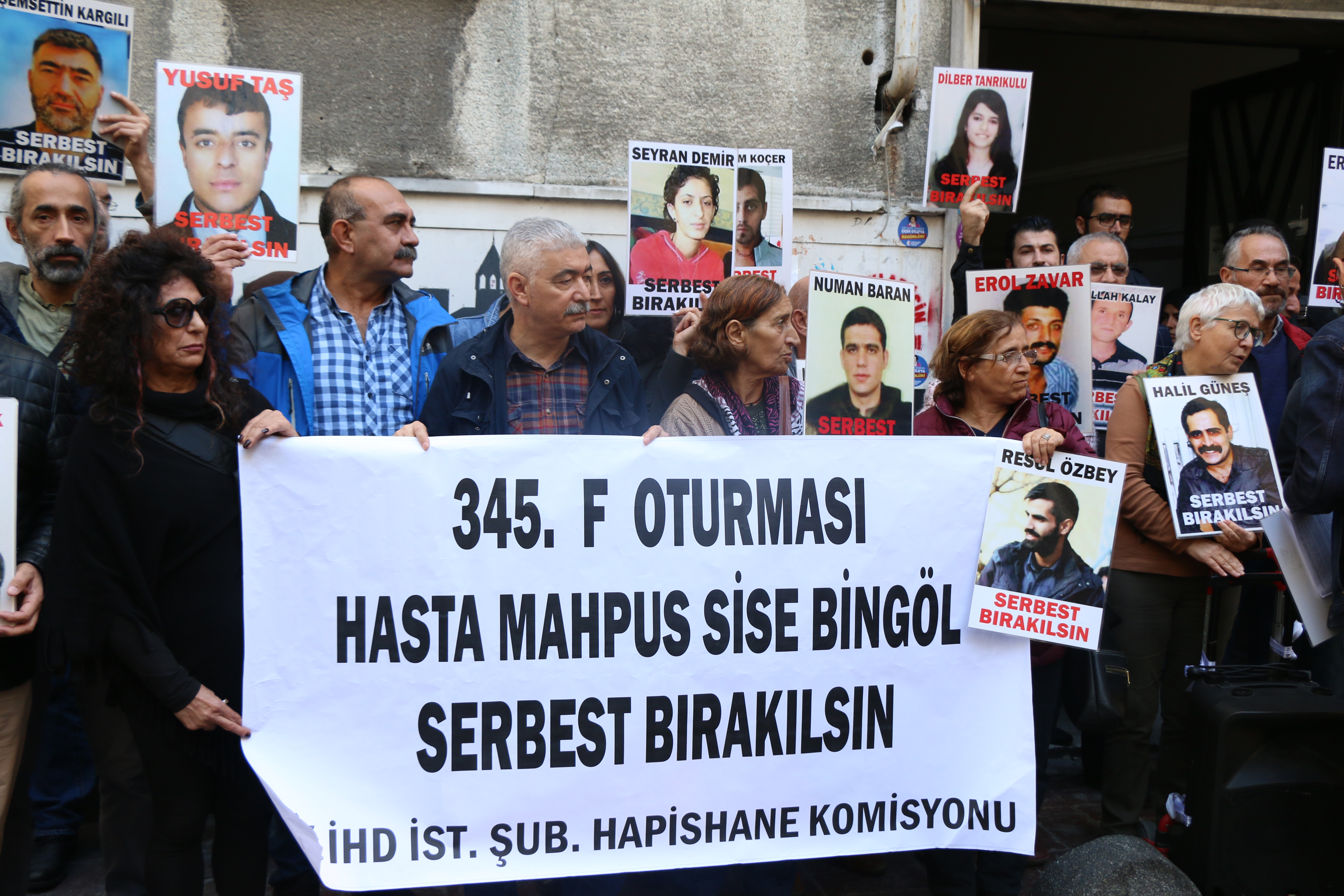 İnsan Hakları Derneği (İHD) İstanbul Şubesi Hapishane Komisyonu’nun, hasta tutukluların serbest bırakılması talebiyle Galatasaray Meydanı’nda yapmak istediği F Oturumu’nun 345’ncisi de engellendi. Polisin engeli üzerine açıklama İHD şube binası önünde yapıldı. “Hasta mahpus Sise Bingöl serbest bırakılsın” pankartlarının açıldığı eylemde, basın açıklamasını İHD İstanbul Şubesi Hapishane Komisyonu Üyesi Taylan Bekin yaptı.