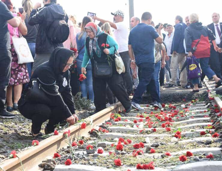 Tekirdağ’ın Çorlu ilçesindeki tren kazasında hayatını kaybeden 25 kişi, olayın meydana geldiği yerde karanfillerle anıldı.