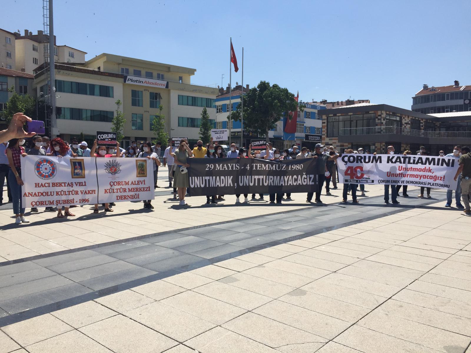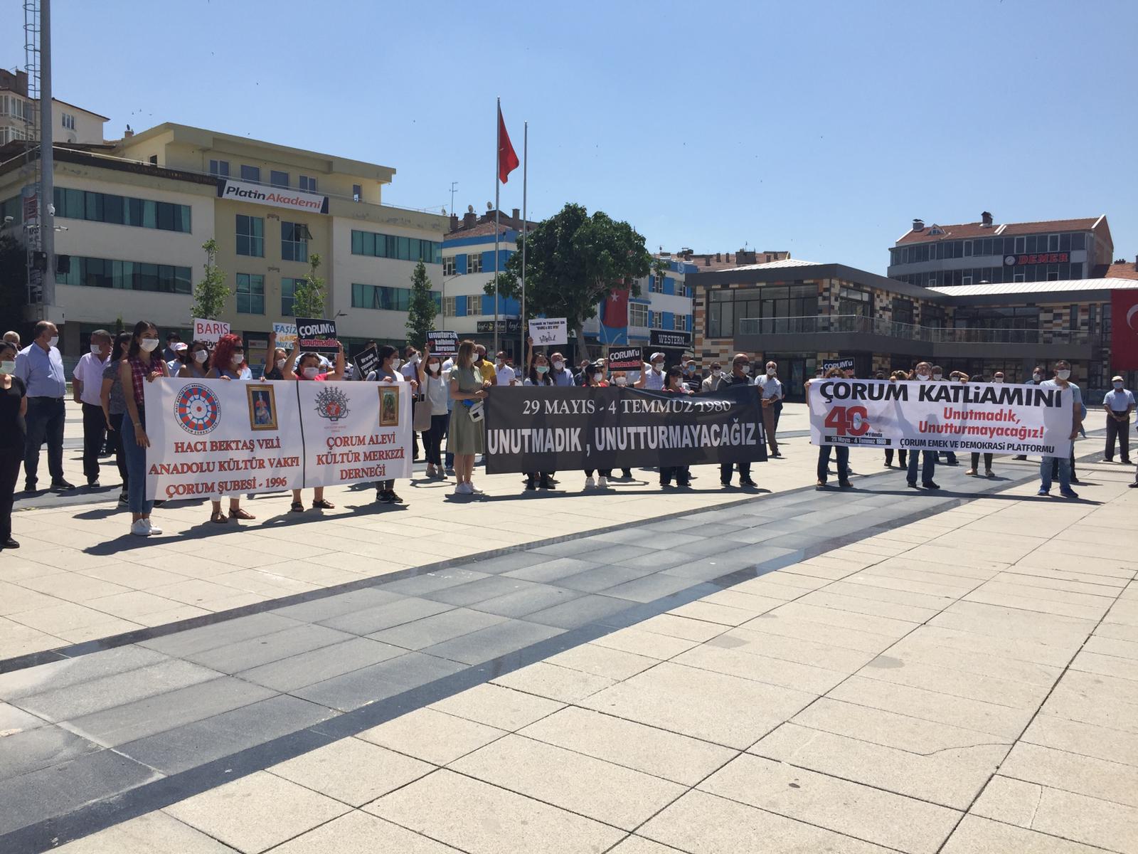 Alevi Bektaşi Federasyonu (ABF), Avrupa Alevi Birlikleri Konfederasyonu (AABK), Alevi Dernekler Federasyonu (ADFE), Alevi Vakıflar Federasyonu (AVF) Hacı Bektaş Veli Anadolu Kültür Vakfı, Pir Sultan Abdal Kültür Derneği (PSAKD), Alevi Kültür Dernekleri (AKD) ve Demokratik Alevi Dernekleri (DAD) Çorum’da çatışmaların yaşandığı meydanda hayatını kaybedenleri andı.
