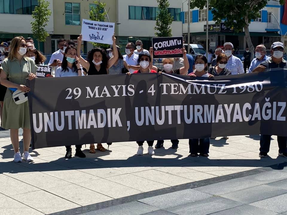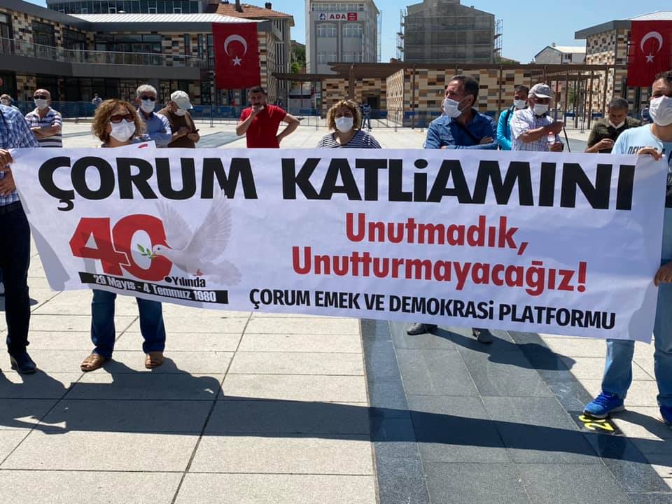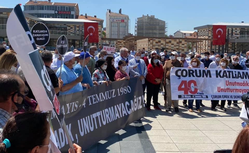 “Son olarak, Çorum katliamın 40’ncı yıl dönümünde, buradan Çorum’dan bir kez daha seslenelim: Çorum katliamının bir daha yaşanmaması için bu olayların katliamın unutulmaması gerektiğine inanıyoruz. Devlet ve iktidarlar; toplumsal barışı sağlamak, demokratik topluma ulaşabilmek için; “Unutulmuş bu olayı neden kaşıyorsunuz? Bunu herkes unuttu, siz de unutun” demek yerine; aksine, Bu katliamlarla yüzleşmek zorundadır. Zaman aşımına uğratılan Maraş, Çorum ve Sivas katliamlarının dosyaları yeniden açılmalı ve failleri ortaya çıkarılmalıdır. Bu katliamların hesabı sorulana kadar; İnançlar, halklar eşit yurttaş haklarına kavuşana kadar; gerçek bir toplumsal barış sağlanana kadar Bizler asla unutmayacağız, unutturmayacağız.”