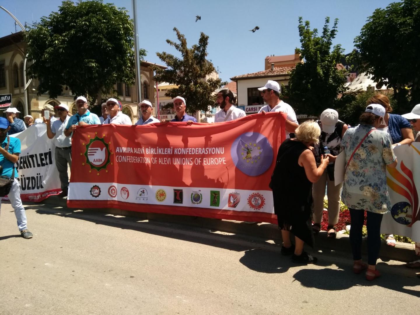 Avrupa Alevi Birlikleri Konfederasyonu Genel Başkanı Hüseyin Mat da yaptığı konuşmada, “Bu katliamları yapanları bir kez daha kınıyoruz. Bir sorun sıkıntı varsa bu sadece bizi dışarıdan katletmek isteyenler, varlık gerekçemizi bir tehlike unsuru olarak görmek isteyenleri biz biliyoruz. Amaçlarını ve niyetlerini biliyoruz. Ama mesele sadece bizi katledenlerde değil, asıl mesele bizde. Biz ne kadar samimi yaklaşıyoruz davamıza ve demokrasi mücadelesine” diye konuştu.