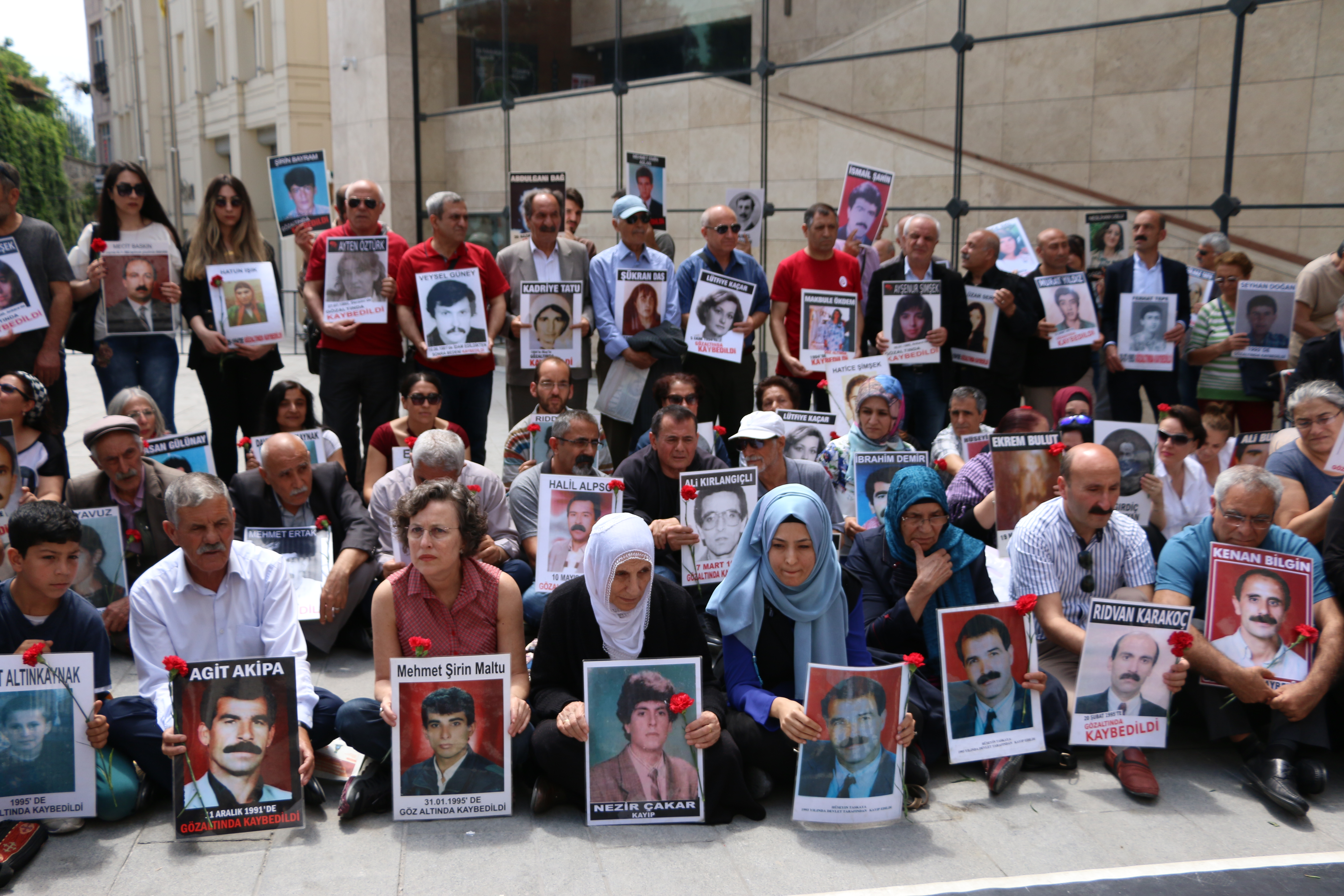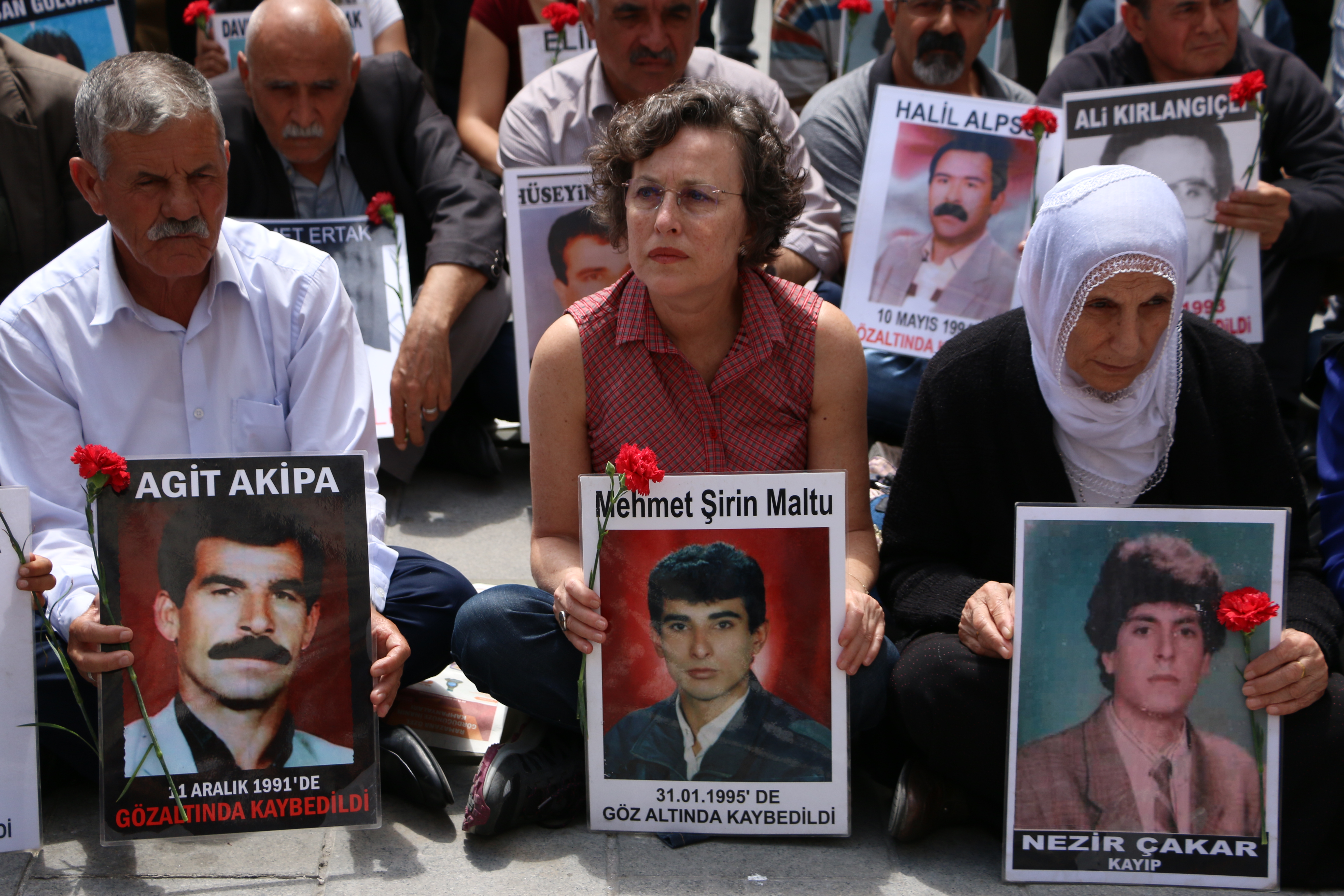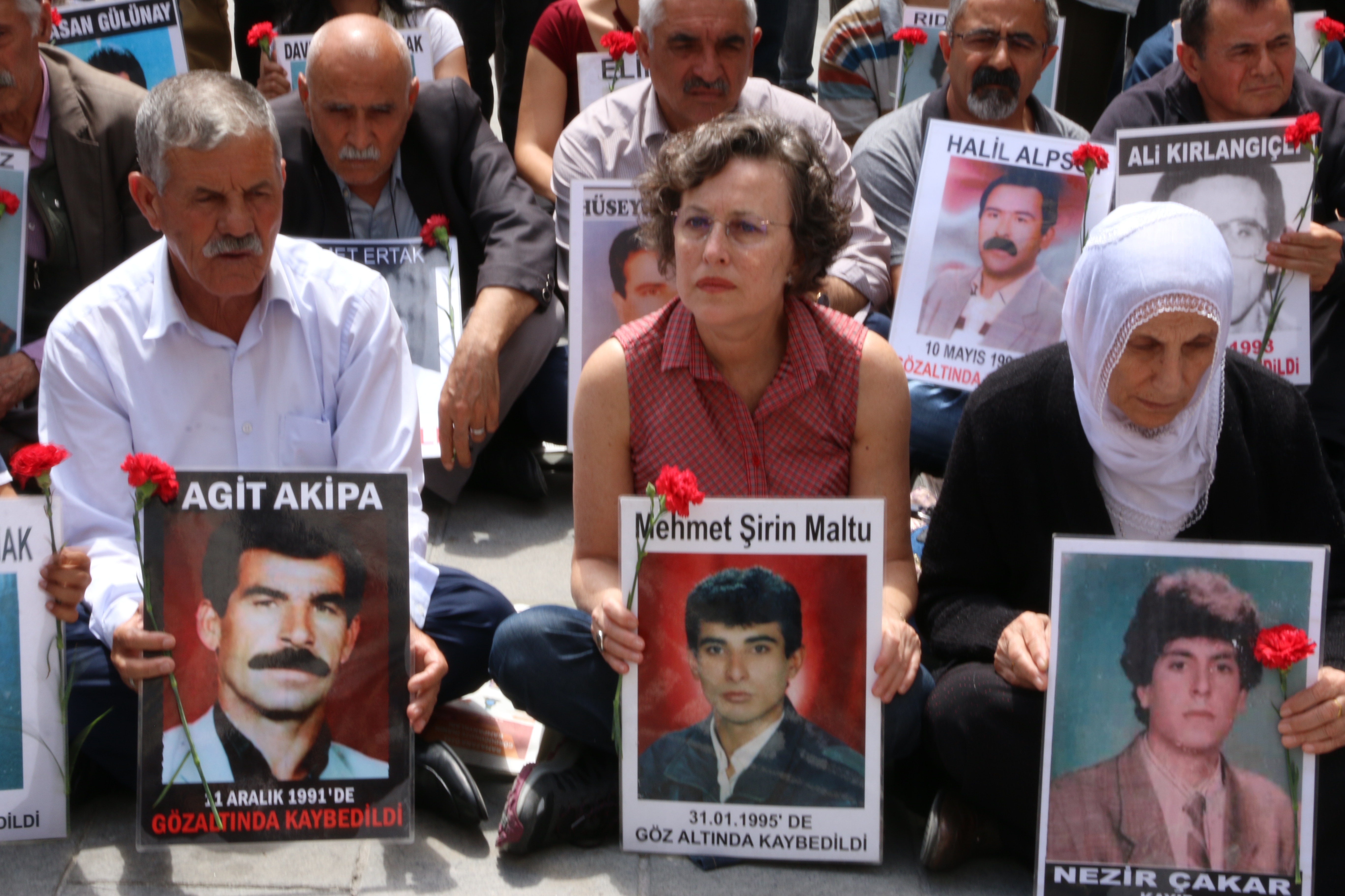 Kayıpların fotoğrafı ve karanfillerin taşındığı eylemde Amed’in Lice ilçesinde 1994 yılında kaybedilen Fahri, Mustafa, Ali, Ekrem ve Ramazan Bulut’un akıbeti soruldu.