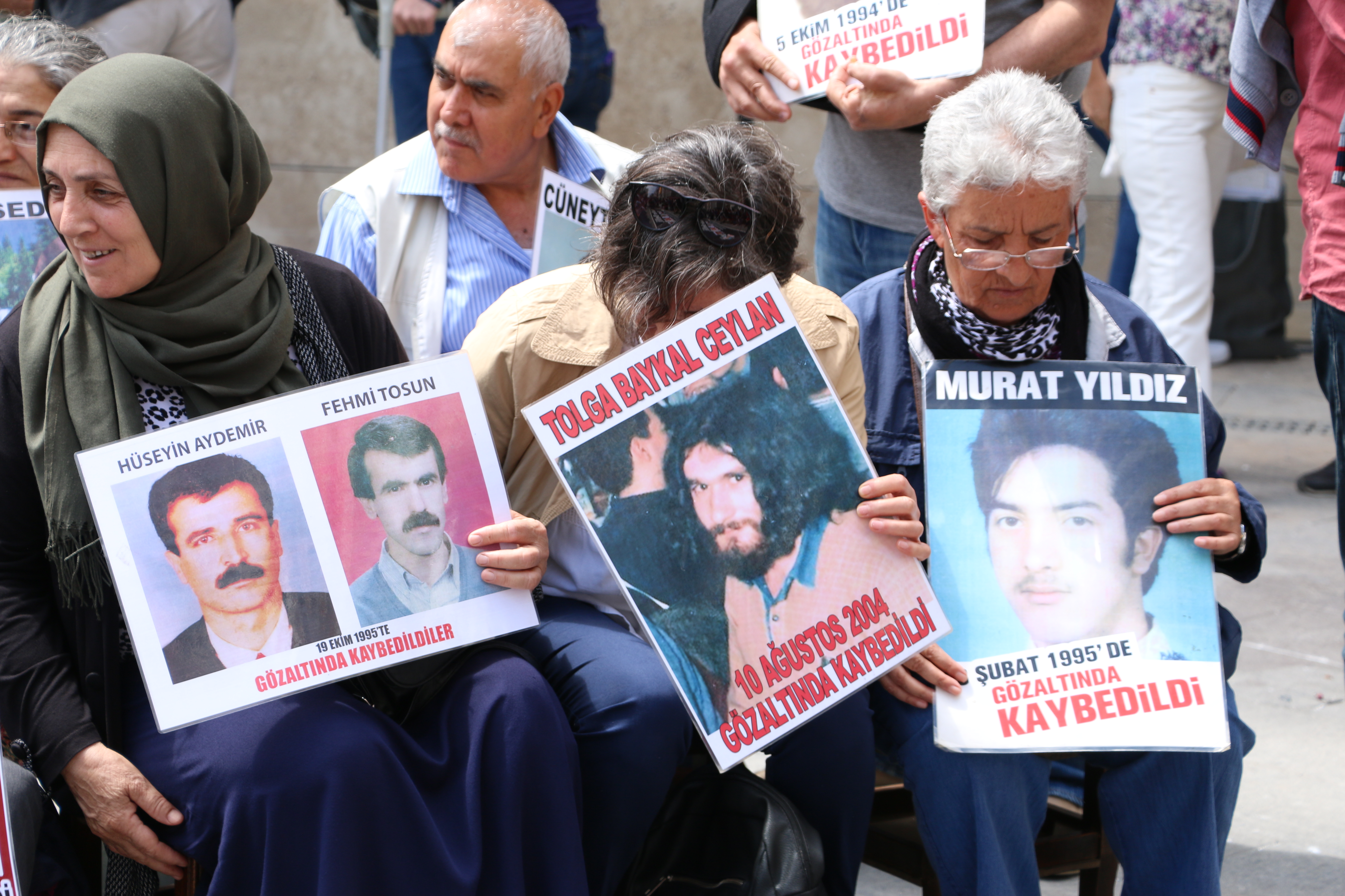 Gözaltına alındıktan sonra, 6 Aralık 1993’te kaybedilen Hüseyin Taşkaya’nın kızı Serpil Taşkaya da, “Babam kaybedildiğinde 8 yaşındaydım. Yaşamla bu meydanda tanıştım. Bu meydanda büyüdüm. Burada verilen mücadelenin içindeyim 23 yıldır. Erdoğan ile yapılan görüşmede bulundum. Orada kayıplarımızın başına ne geldi tek tek anlattık. Sonuna kadar bizi dinledi ve somut adımlar atacaklarını söyledi. Çok geçmeden fark ettik ki orada konuşulanlar orada kaldı. Çıkmadı dışarı o odadan. O görüşmede bir seçim arifesinde oldu. O görüşme seçim malzemesi olarak kullanıldı. Bugünde aynı süreçteyiz. Faili meçhul denilse de failleri belli. Kemiklerimizi istiyoruz. Bizi kirli siyasetlerine alet etmesinler” diye belirtti.