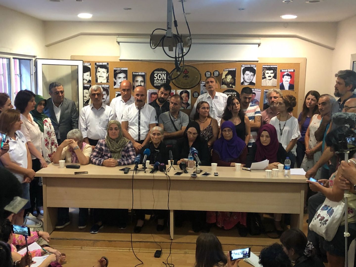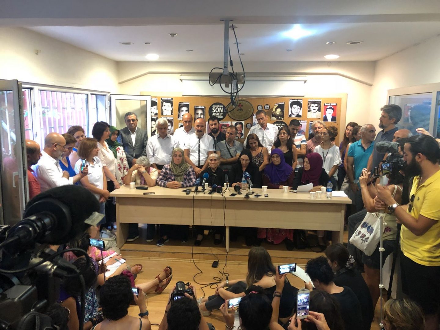“Unutmuyoruz, Affetmiyoruz, Vazgeçmiyoruz!” diyerek 27 Mayıs 1995’den beri Galatasaray Meydanı’nda kayıplarının akıbetini soran Cumartesi Anneleri ve kayıp yakınları, AKP tarafından eylemlerinin yasaklanmasına ilişkin basın toplantısı düzenledi. İnsan Hakları Derneği (İHD) İstanbul Şubesi’nde düzenlenen toplantıda gözaltında kaybedilenlerin fotoğrafları asıldı. Toplantıya Cumartesi Anneleri, İHD Eş Genel Başkanı Avukat Eren Keskin, HDP Milletvekilleri Hüda Kaya, Garo Paylan, Züleyha Gülüm, Oya Ersoy, Murat Çepni, Serpil Kemalbay, Ömer Faruk Gergerlioğlu, Gülistan Kılıç Koçyiğit, CHP Milletvekili Sezgin Tanrıkulu, siyasi parti ve sivil toplum örgütü temsilcileri ile çok sayıda hak savunucusu katıldı.
