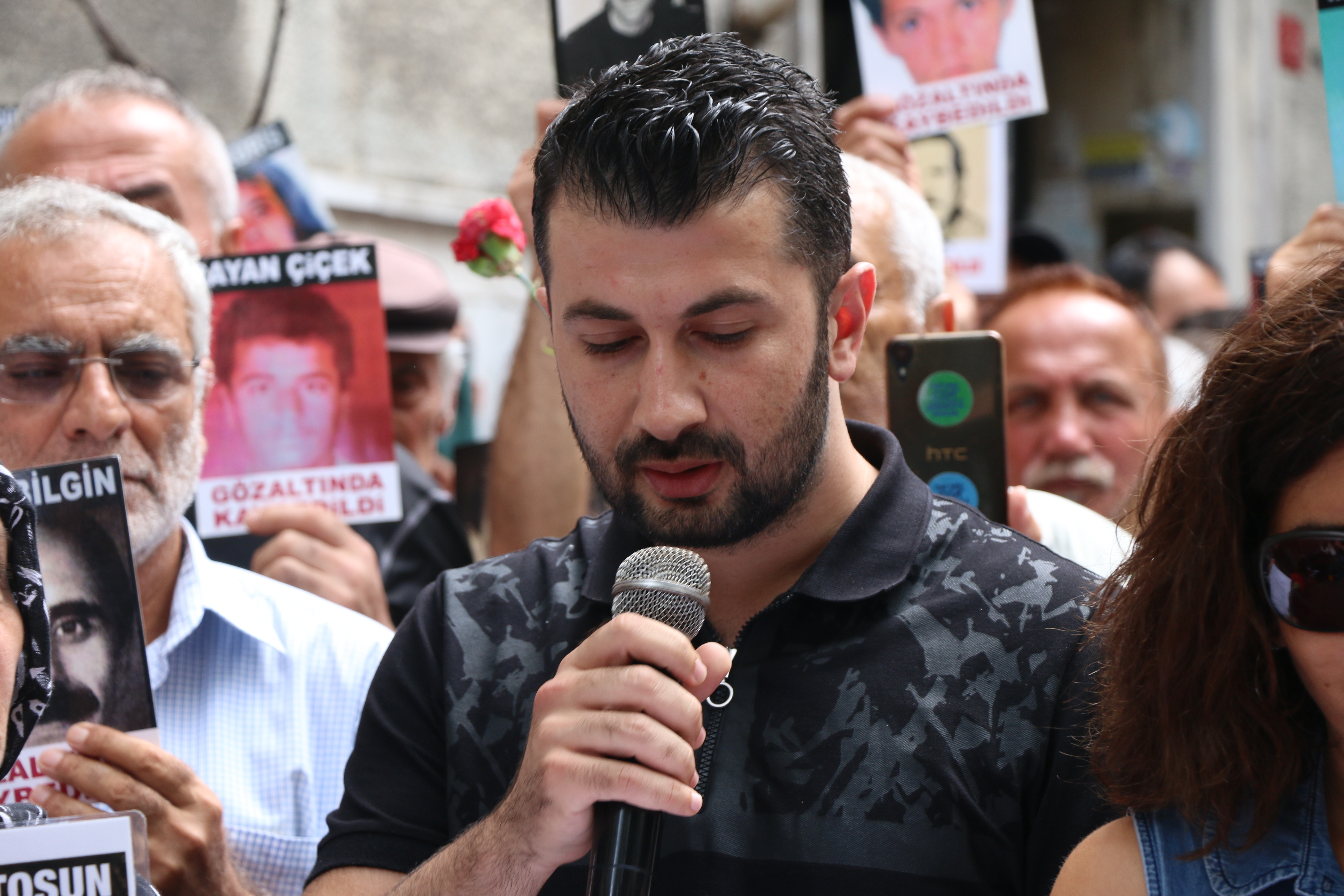 Basın metini okuyan İHD İstanbul Şube Başkanı Gülseren Yoleri, “Türkiye’de gözaltında kaybedilenlerin akıbetlerine ve faillerine dair resmi suskunluk iktidardan iktidara devreden bir gelenektir. Bu kadim gelenek kamu gücünü kullananların yurttaşa karşı suç işleme imtiyazını sürdürmeyi hedefler. Hukukun üstünlüğü yerine, gücün ve keyfiliğin egemen olmasını hedefler. İktidarın yurttaşa karşı işlenen suçları yok sayan, onaylayan resmi sessizliği karşısında yükselen sesimiz hakikate, adalete ve masumiyete sahip çıkmak içindir” dedi.
