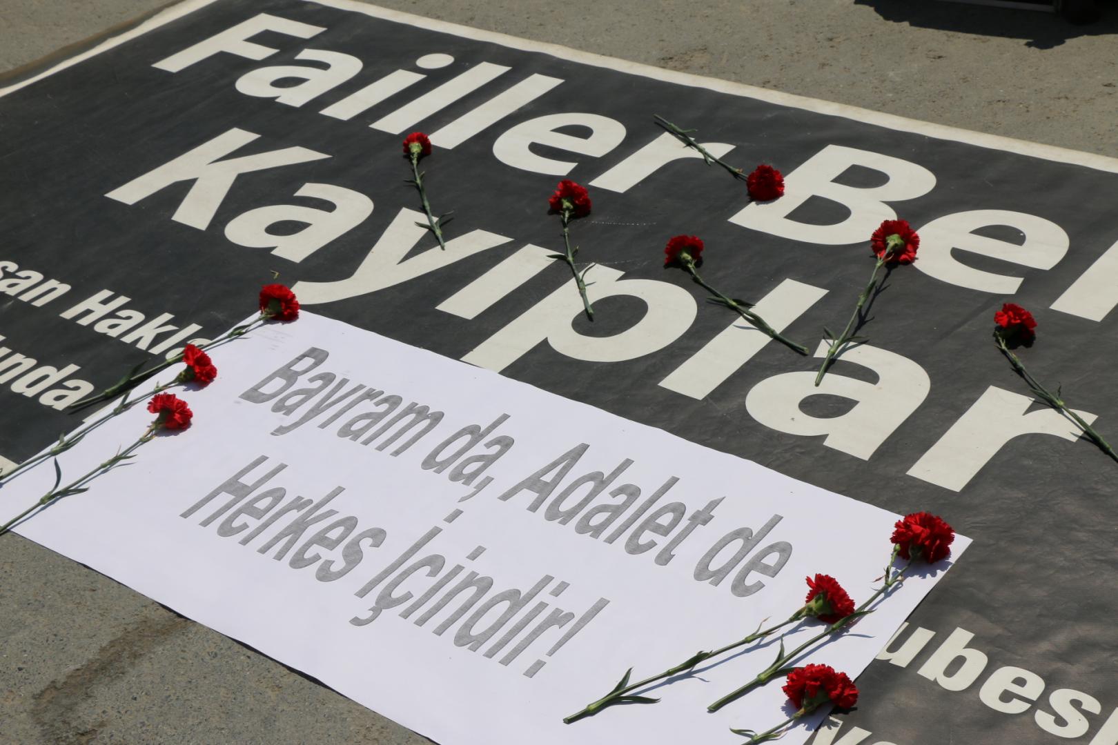 Cumartesi Anneleri eylemlerinin 638. haftasında “Failler belli kayıplar nerede” pankartının üzerine kırmızı karanfiller ve “Bayram da, Adalet de herkes içindir!” pankartı bırakıldı.