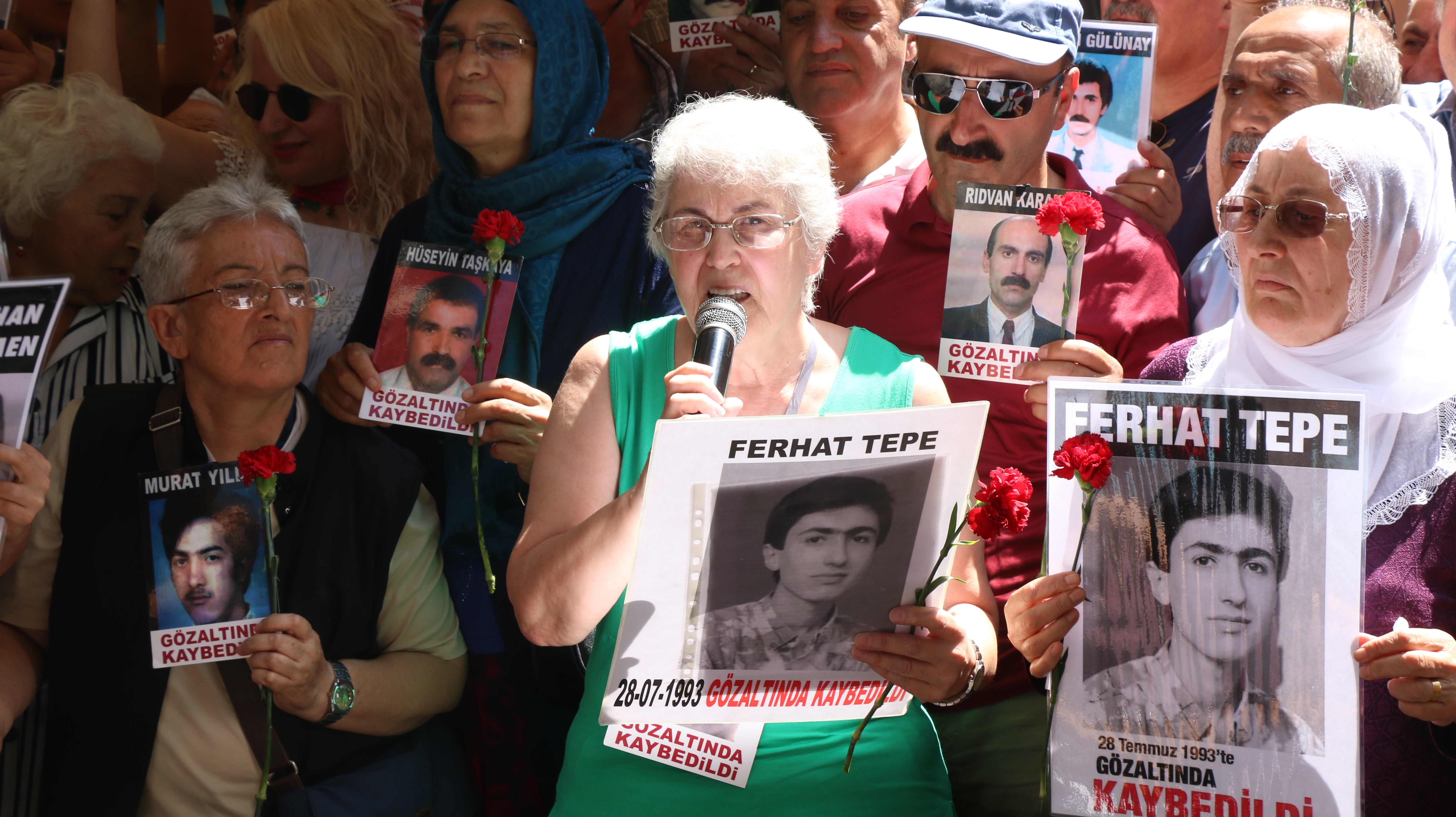 750. haftalarında 26 yıl önce gözaltına alınarak kaybedilen, Ferhat Tepe için buluştuklarını söyleyen Eren, “Olayın aydınlanması için hükümetin AİHM’le işbirliği yapmadığı, gerekli bilgi, belge ve tanıklara ulaşım sağlamadığı ve etkin bir cezai soruşturma yapmadığı için Türkiye’yi mahkum etti. İç hukukta ailenin yaptığı tüm başvurular gerekçesiz reddedildi. Ferhat’ı Diyarbakır Jandarma Alay Komutanlığı’nda işkenceli sorguda gördüğünü söyleyen 14 tanığın ifadesine başvurulmadı. Elazığ Cumhuriyet Başsavcılığı tarafından yürütülen soruşturma 2013 yılında zamanaşımı gerekçesiyle kapatıldı. Bunun üzerine Anayasa Mahkemesi’ne taşınan davada mahkeme, ‘savcılığın soruşturmayı genişletmek için somut hiçbir talimat vermediğini, olayı aydınlatacak işlem yapmadığını, soruşturmanın sürüncemede bırakıldığını’ kayıt altına aldı ve hak ihlali kararı verdi. Ancak değerlendirmesini uluslararası hukuka aykırı biçimde ‘insanlığa karşı suç’ kapsamında yapmayarak, zamanaşımı gerekçesiyle soruşturmanın yeniden açılmasını engelledi” ifadelerini kullandı.