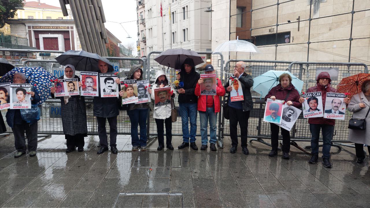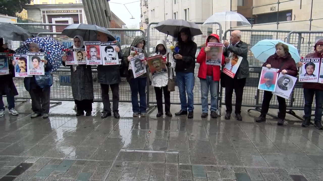 PİRHA- Cumartesi Anneleri, kayıplarının akıbetini sormak için 1079. kez Galatasaray Meydanı’ndaydı. Yoğun yağmura rağmen kalabalık bir kitlenin katıldığı eylemde, 39 yıldır akıbetine ulaşılamayan Mahmut Doğan’ın dosyası gündeme taşındı. Ellerinde karanfillerle meydana gelen kayıp yakınları ve hak savunucuları, polis bariyerleriyle çevrili alanın önünde basın açıklaması yaptı. Basın metnini, Gözaltında Kayıplara Karşı Komisyon üyesi Sebla Arcan okudu.