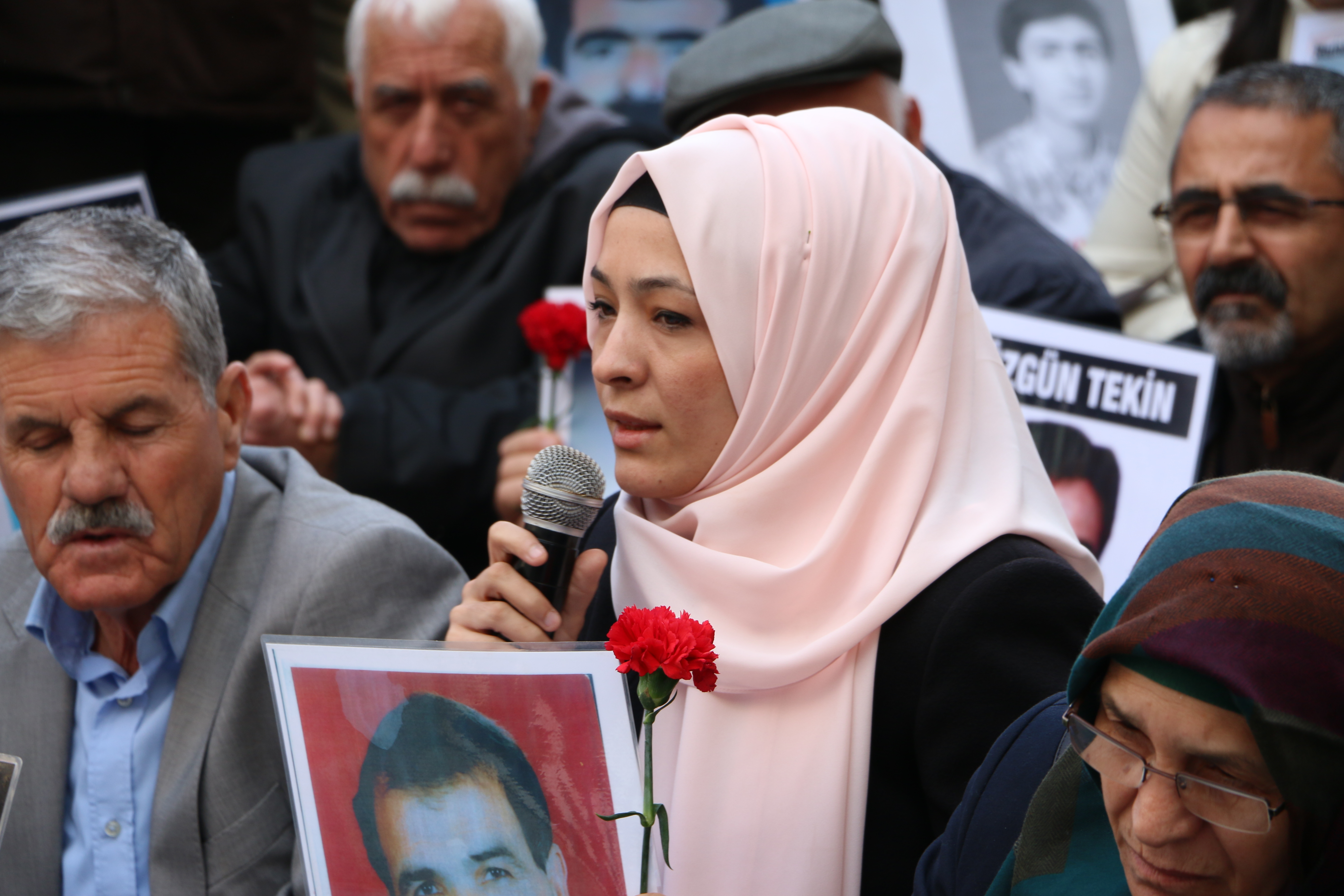 İnsan Hakları Derneği İstanbul Şubesi Gözaltında Kayıplara Karşı Komisyon adına basın açıklamasını gözaltında kaybedilen Hüseyin Taşkaya’nın yeğeni Sürgün Taşkaya okudu.